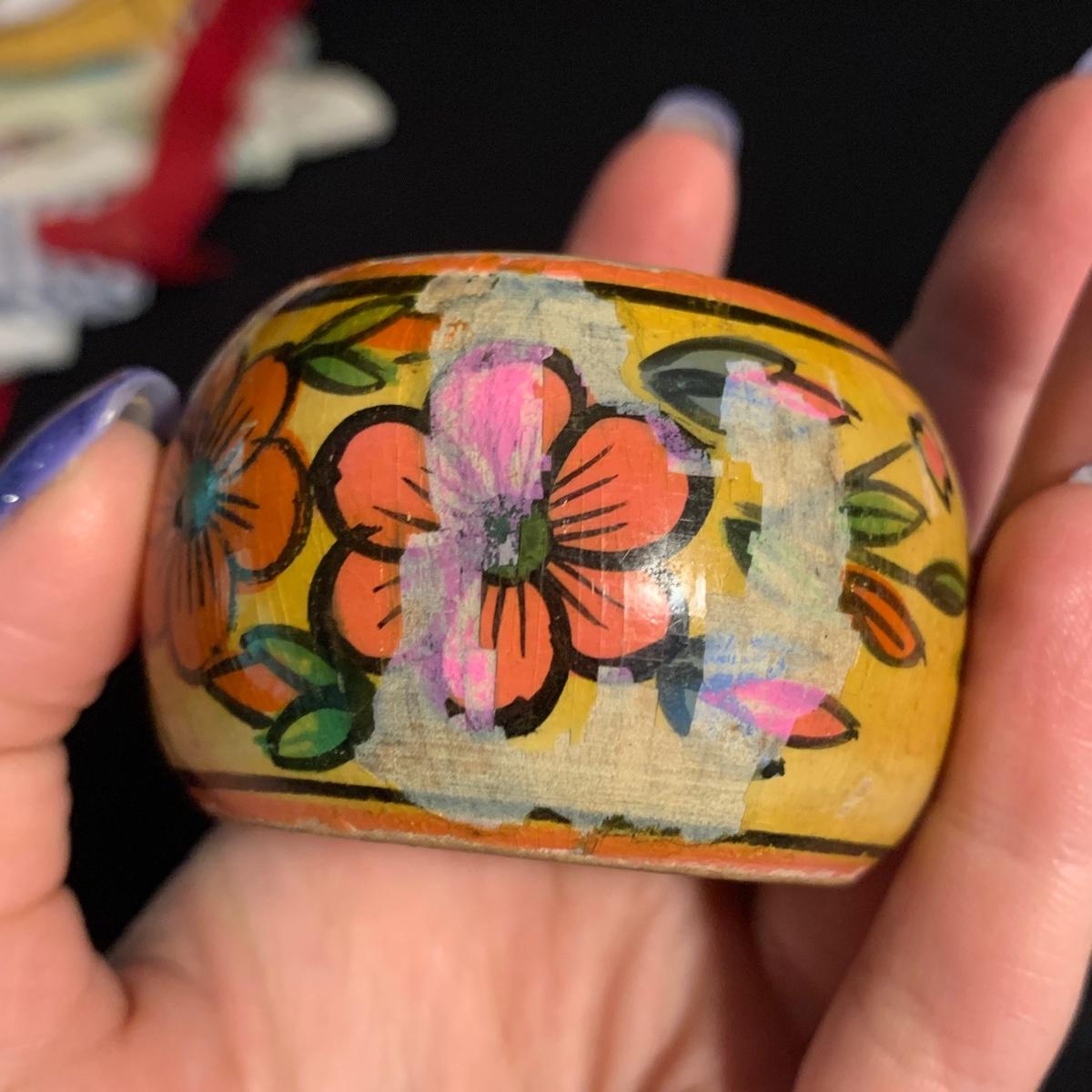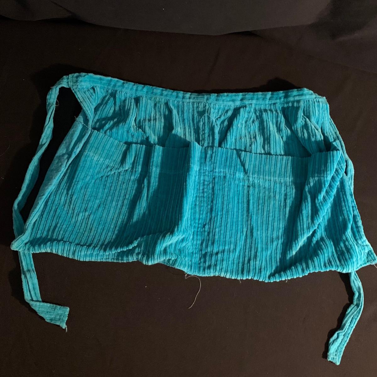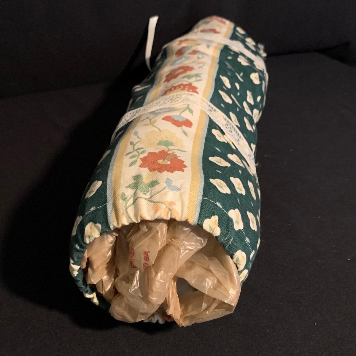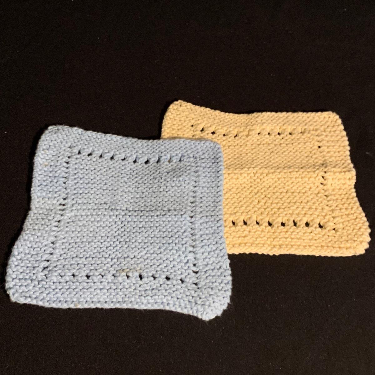 In this lot there are approximately 25 aprons, 20 potholders, 20 dishwashing cloths, 6 napkins rings, and a cloth tube used for storing plastic grocery bags. Most cloth items appear to be handmade. The aprons are sewn, the dish cloths are mostly crocheted. The napkin rings are painted wood and have a sticker that says they are made in India. Some aprons are full length and some are half length. Most items are in good condition. Some items are in fair condition with loose yarn or small holes. Shipping available.