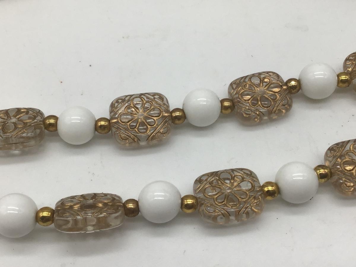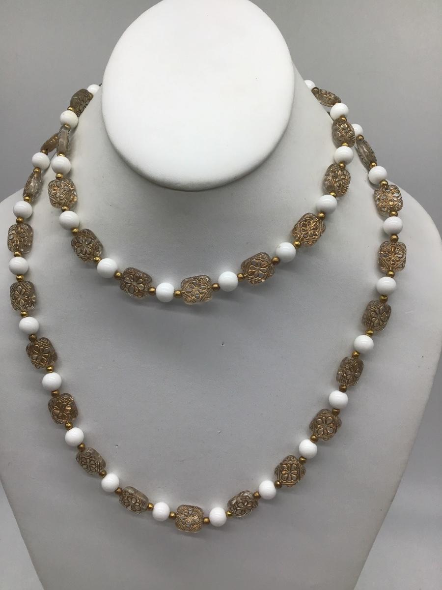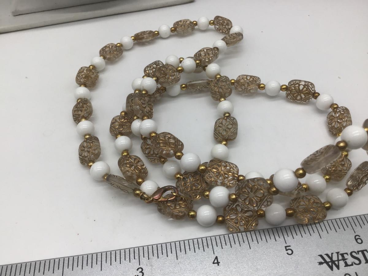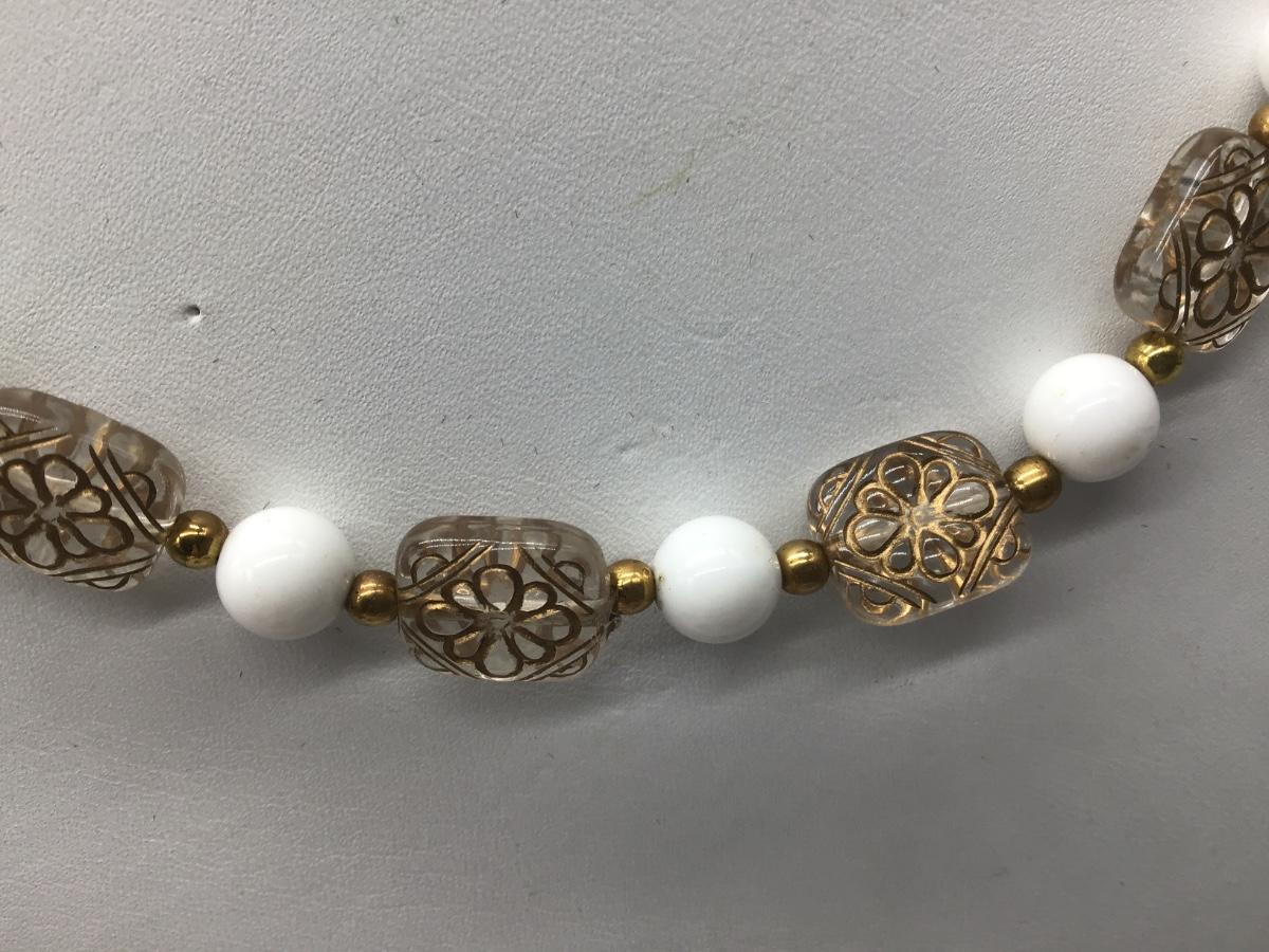 Unique Vintage Beaded Necklace Clear Gold Scroll Beads. Pretty 🤩