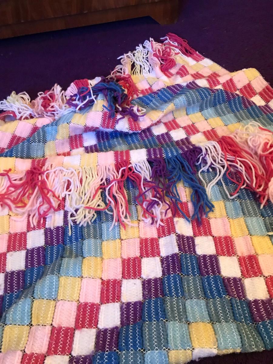 Unique Vintage BOHO Rainbow Crochet Throw