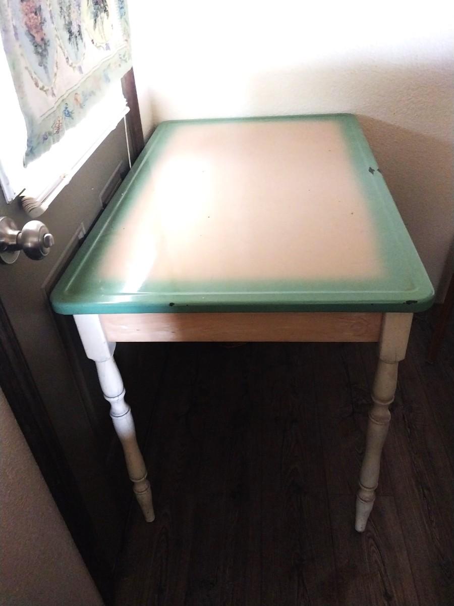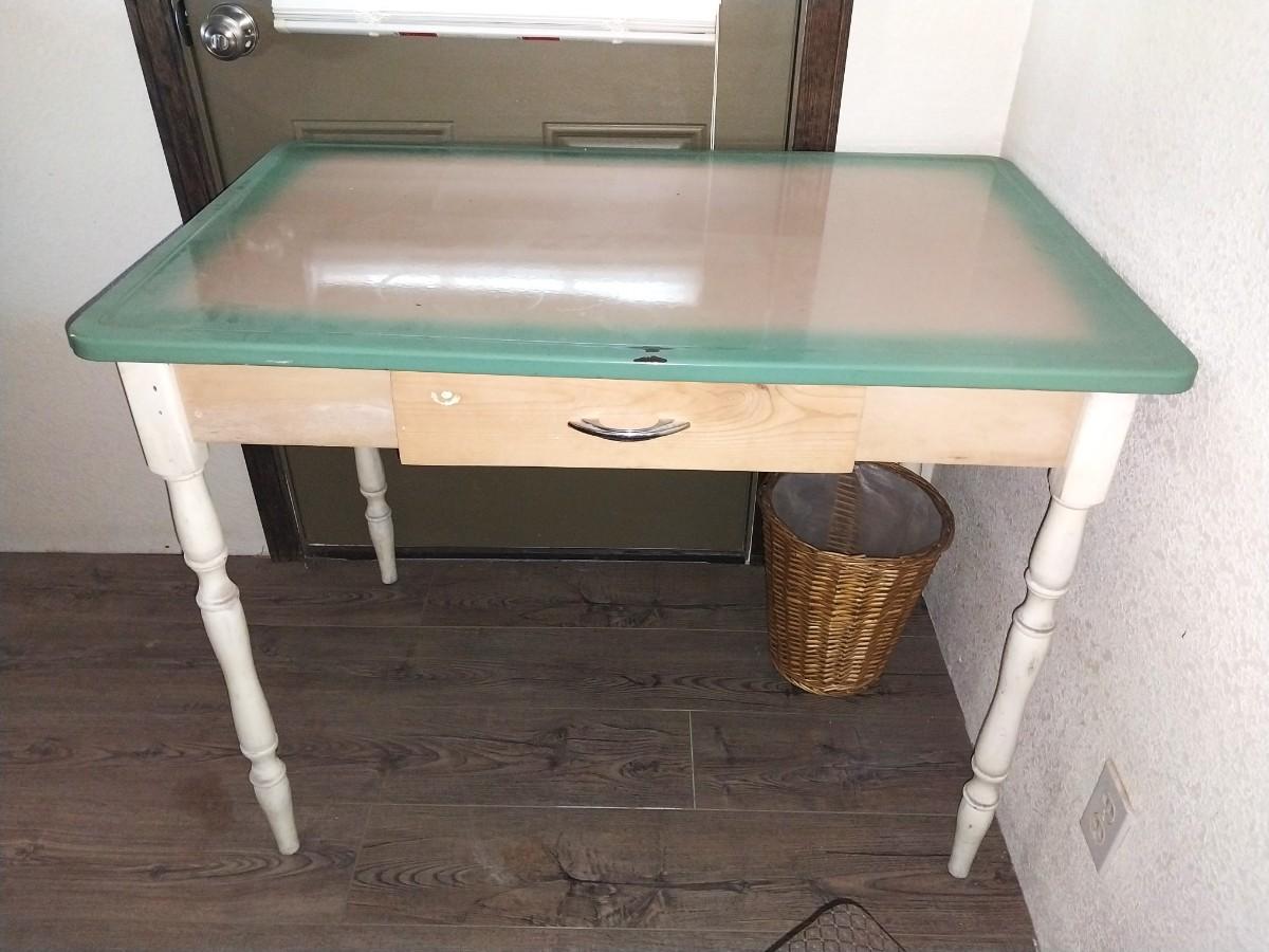 UNIQUE VINTAGE ENAMEL TOP ONE DRAWER DESK/TABLE
