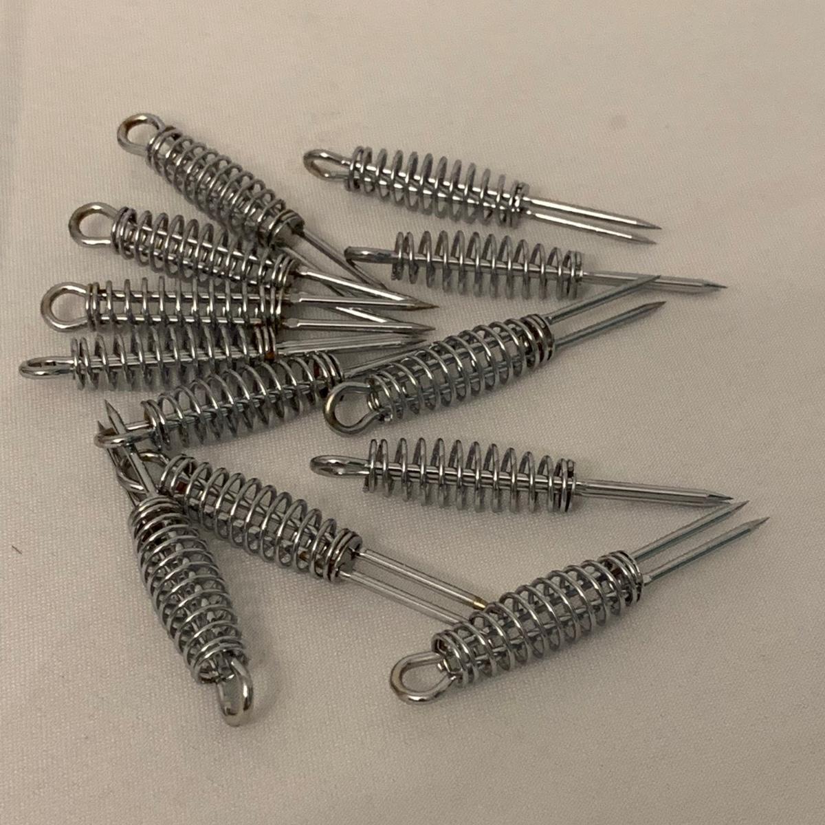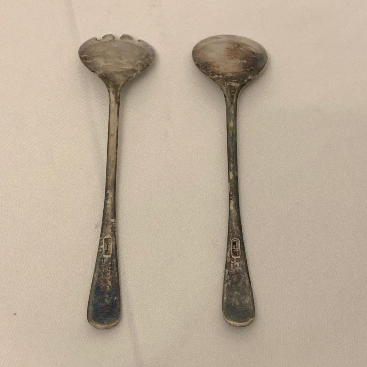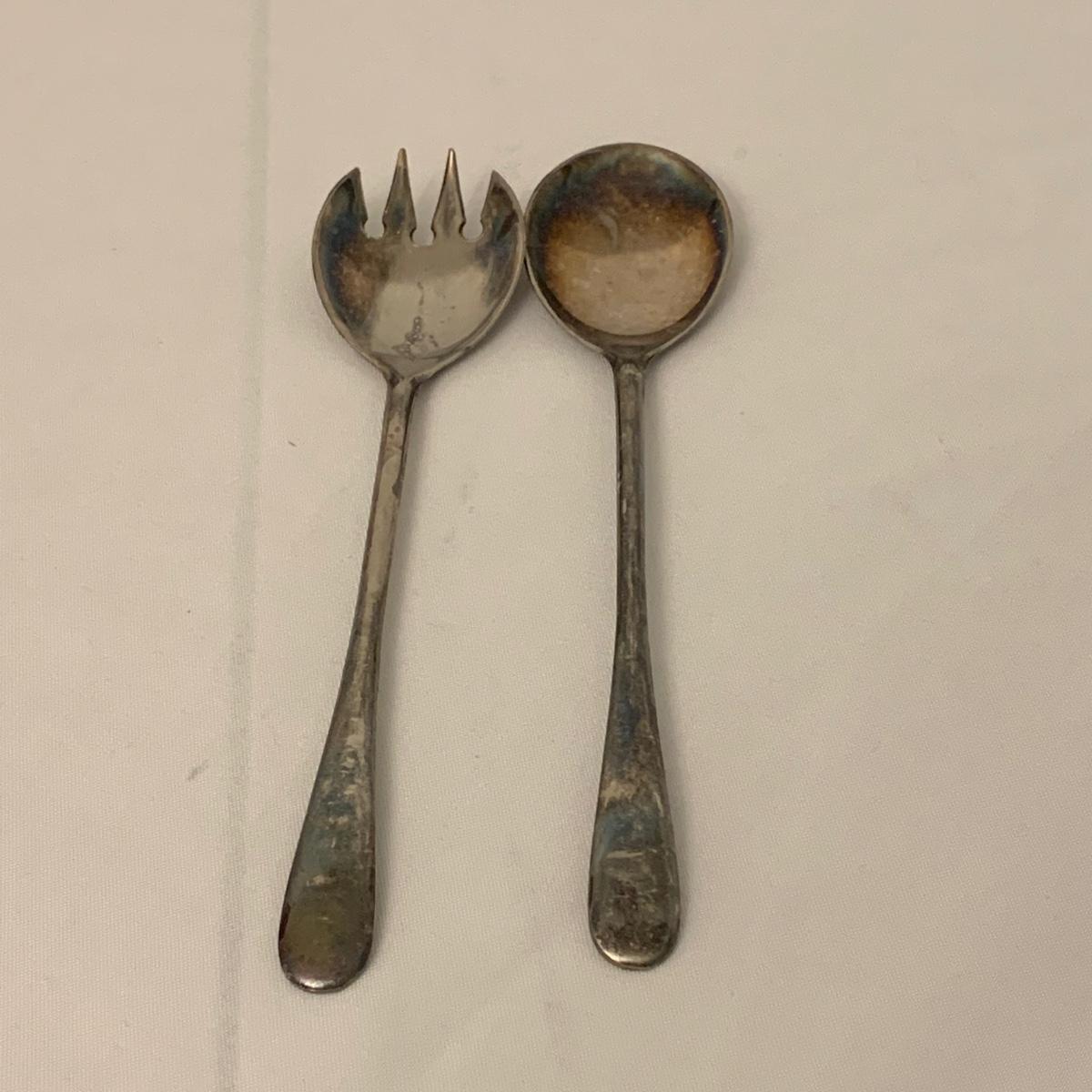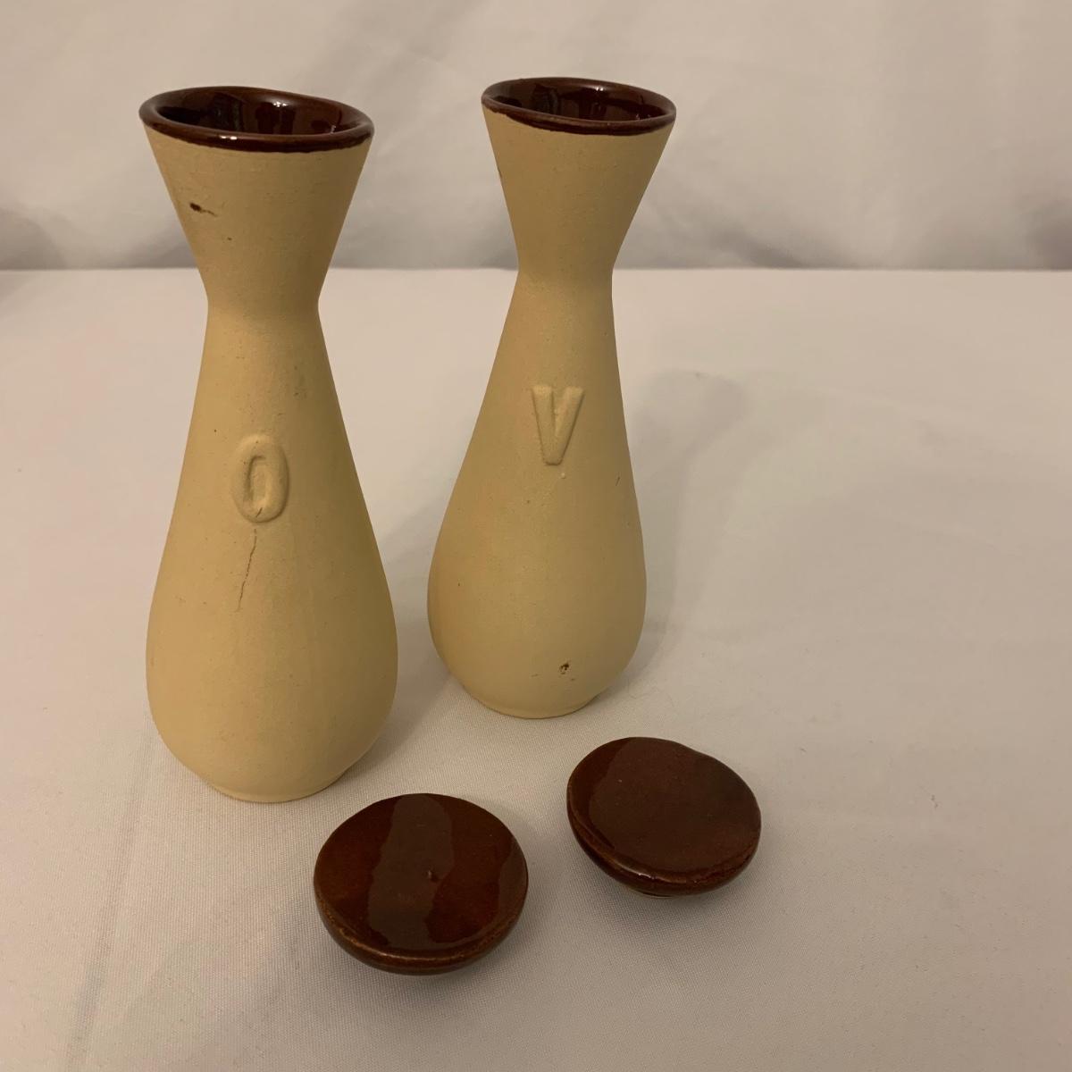 Collection of unique and vintage kitchen items includes Italian made silver plated salad serving set, ice pick, wood spoon rest, little metal cart with glass salt and pepper shakers, a glass pitcher, ceramic oil and vinegar jar set, wood mortar and pestle, two sets of corn cob holders, a 6-piece Tramontina steak knife set, and a 5-piece steak knife set. The salad serving set is tarnished and there are signs of wear on the corn holders and knives, but otherwise all items seem to be in good condition. Shipping available.