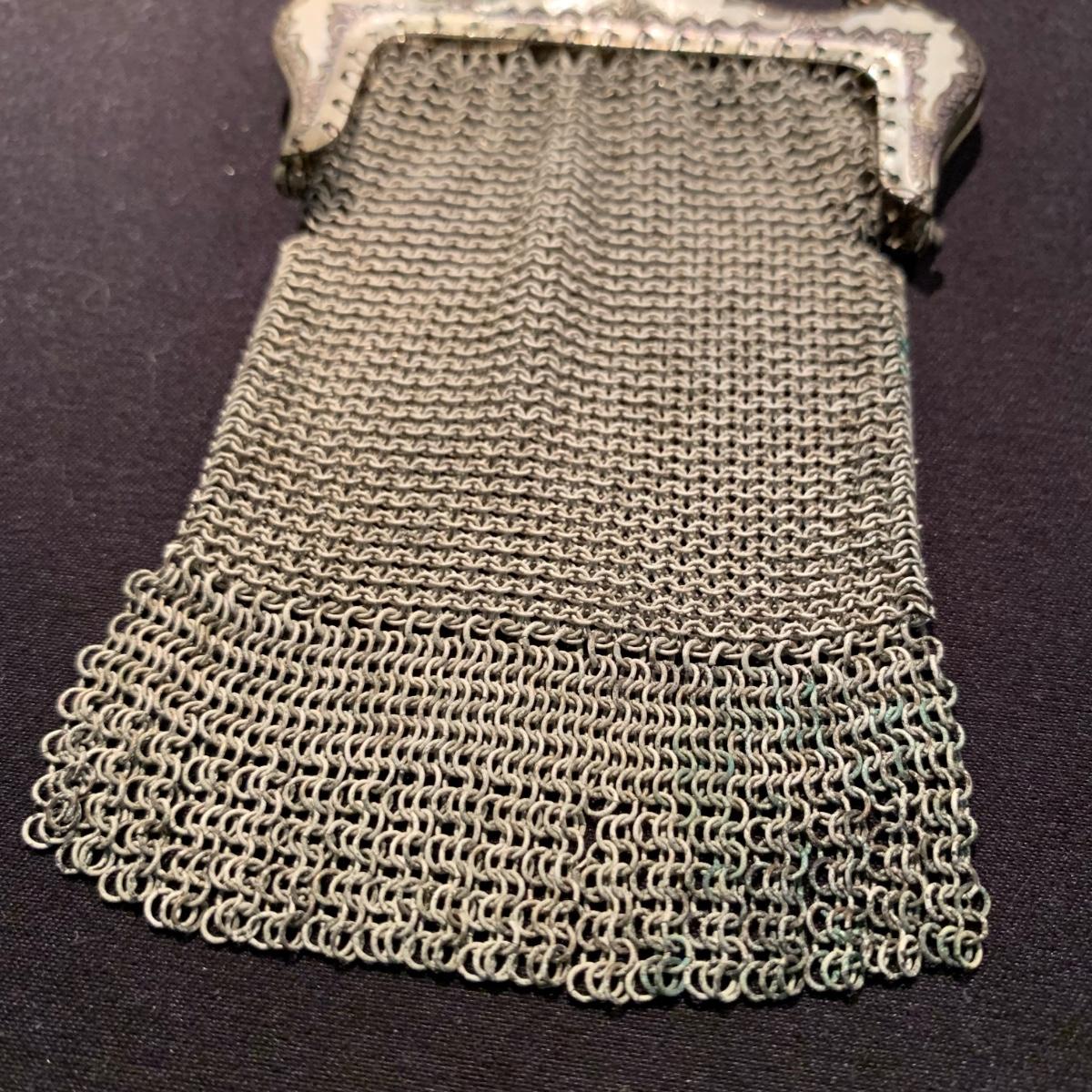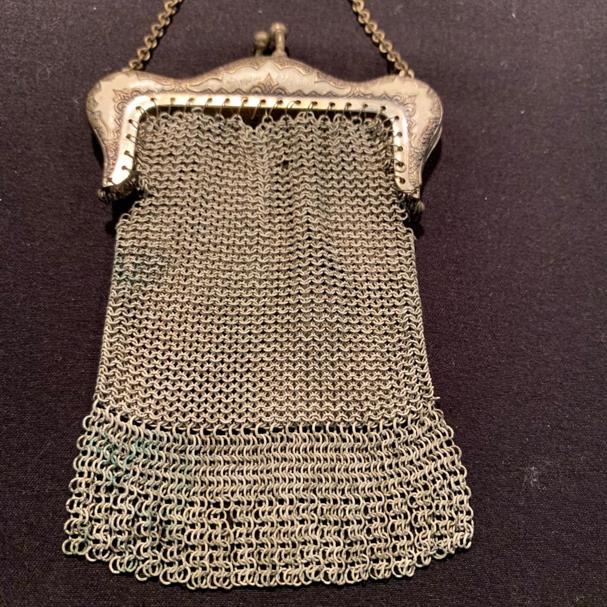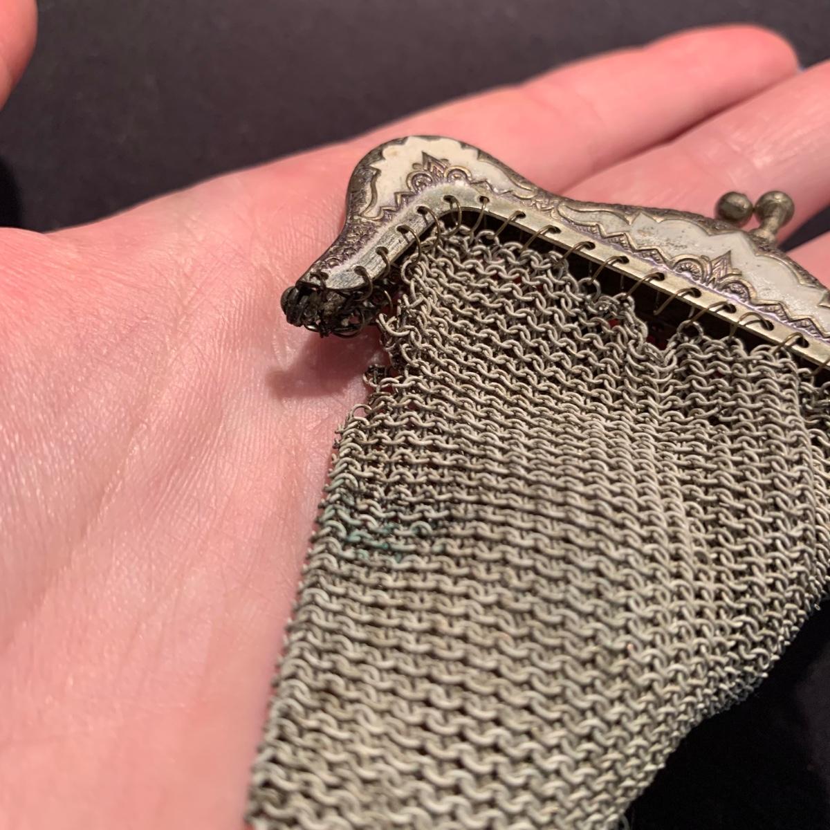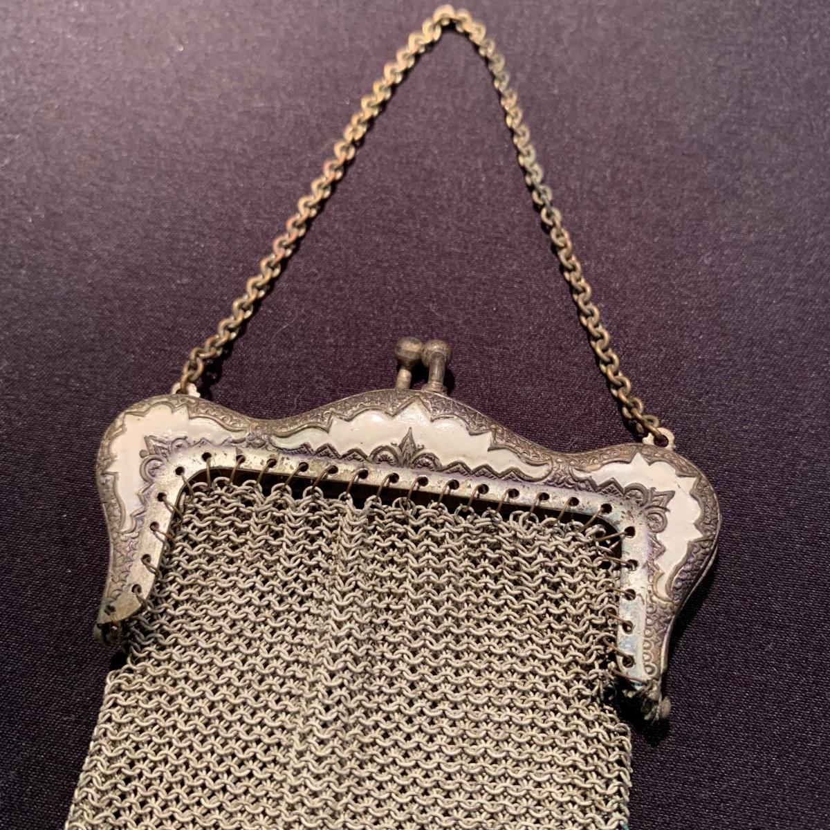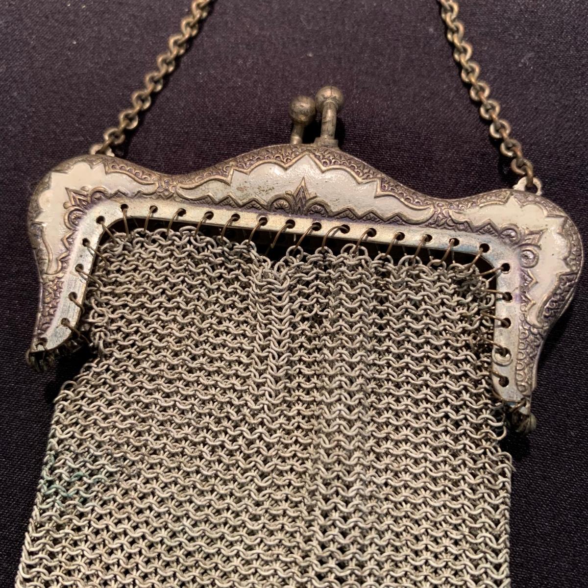 Two unique vintage metal/mesh purses. The colorful one is a Whiting & Davis Co. Mesh Bag. It measures approximately 4” x 7” (not including the chain handle). The other is a Modele Depose that measures approximately 2.75” x 4”. Note some of the links coming off the metal wires on the Modele Depose. They are both very delicate. Shipping available.