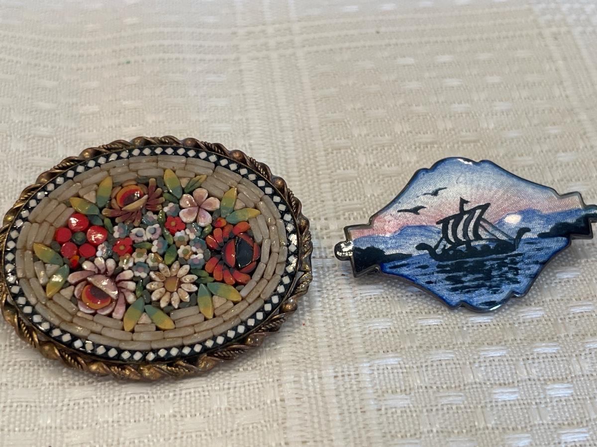 Unique vintage pins: Lisner pin & one from Italy & Norway