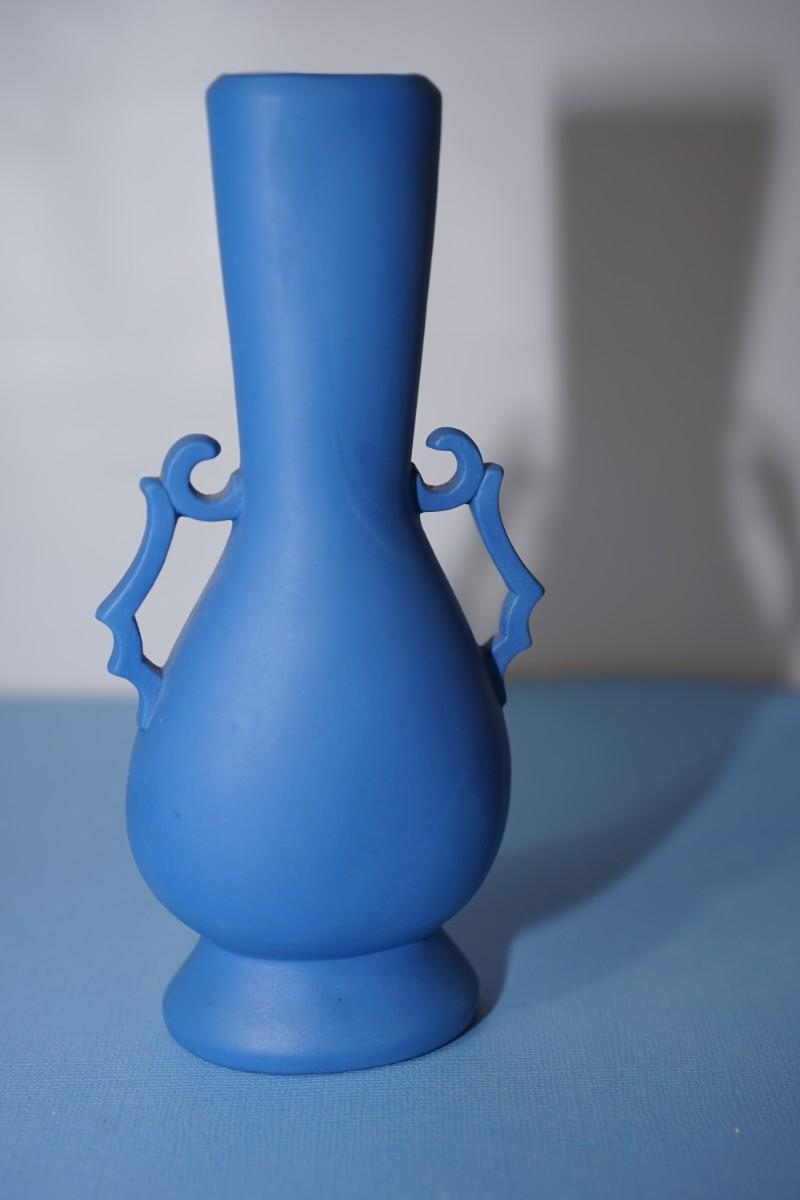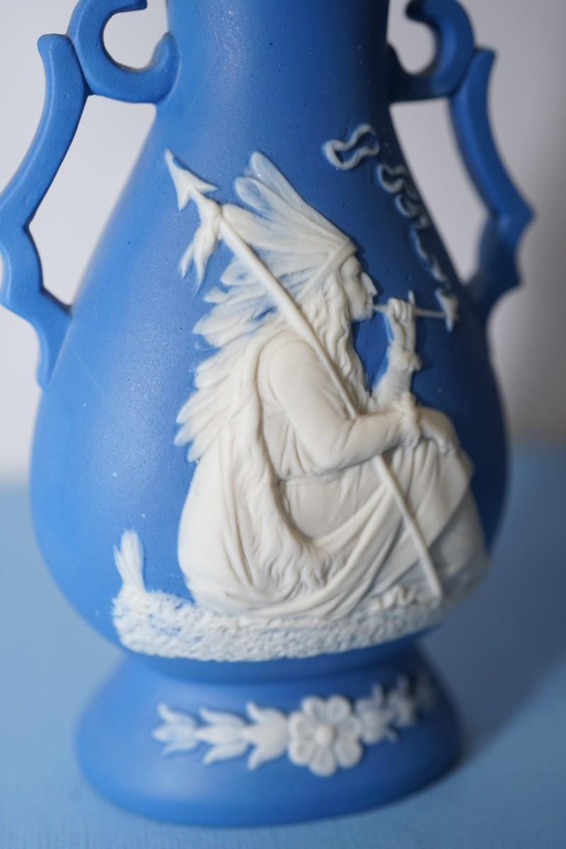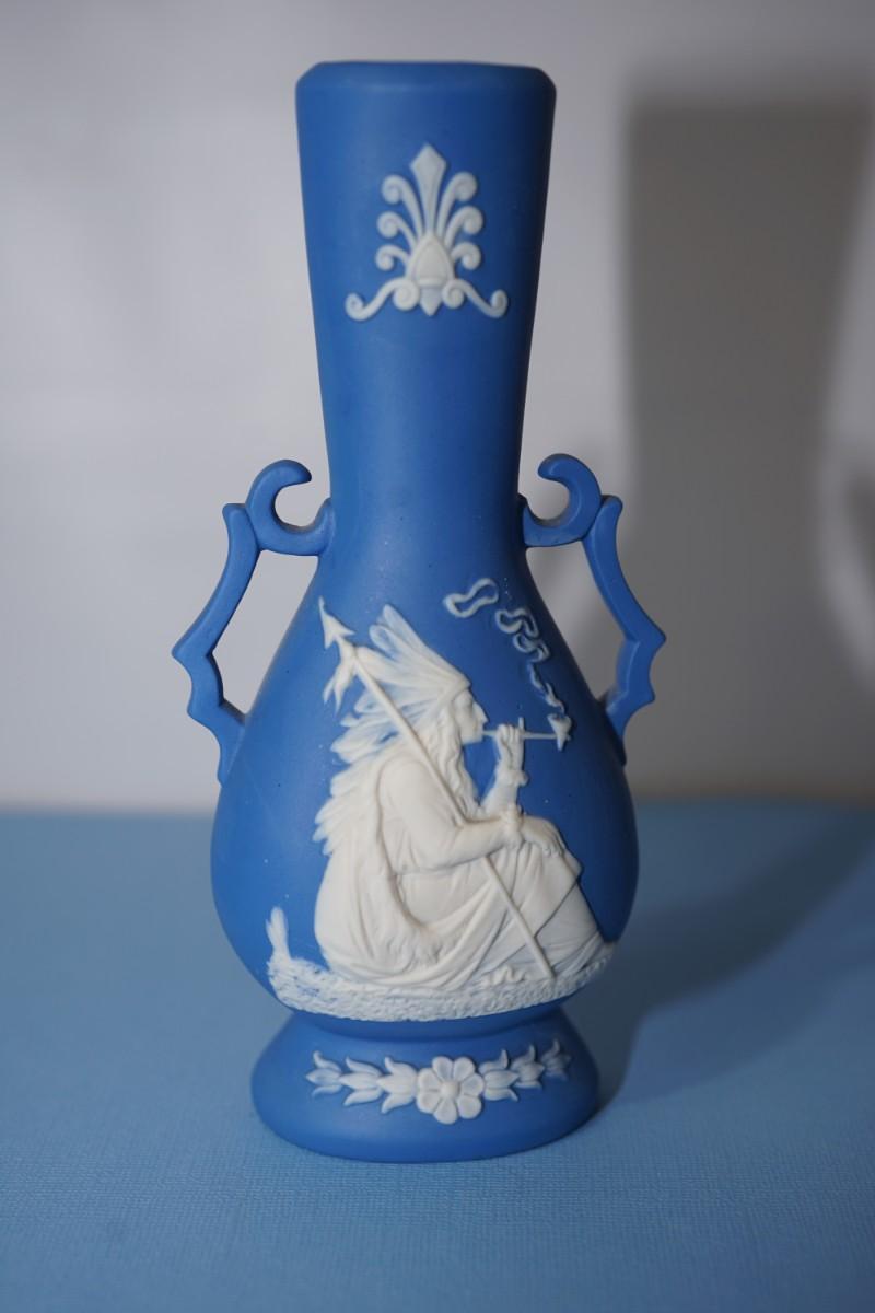 UNIQUE WEDGEWOOD STYLE MEDIUM BLUE JASPERWARE HANDLED VASE/ NATIVE AMERICAN SMOKING PIPE