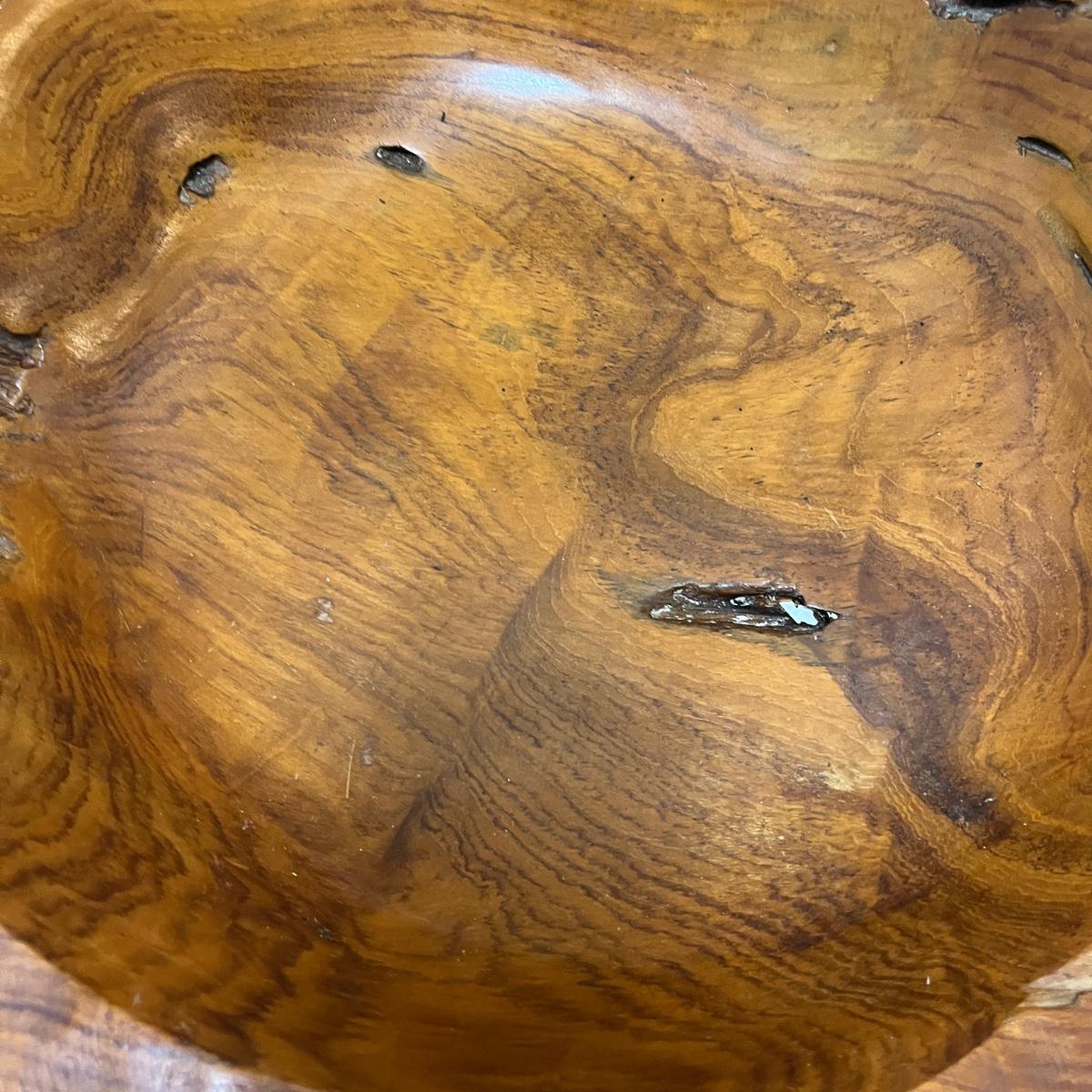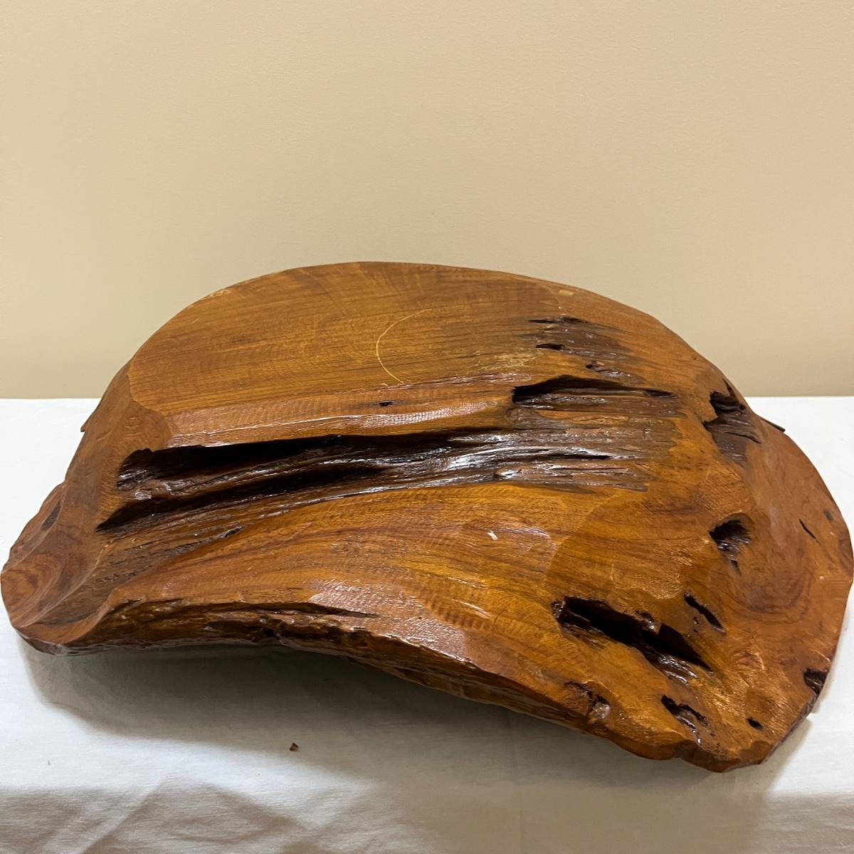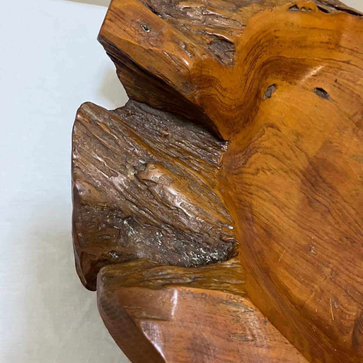 Lot includes a unique wooden bowl that appears to be a carved teak root bowl.