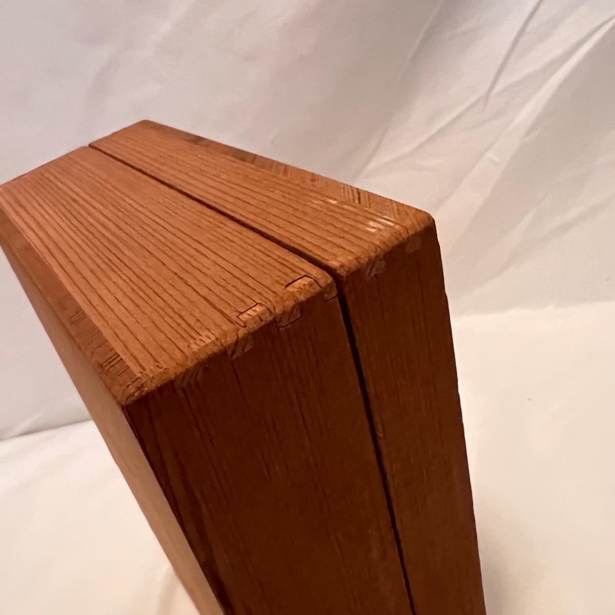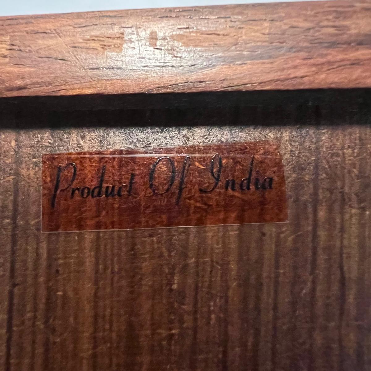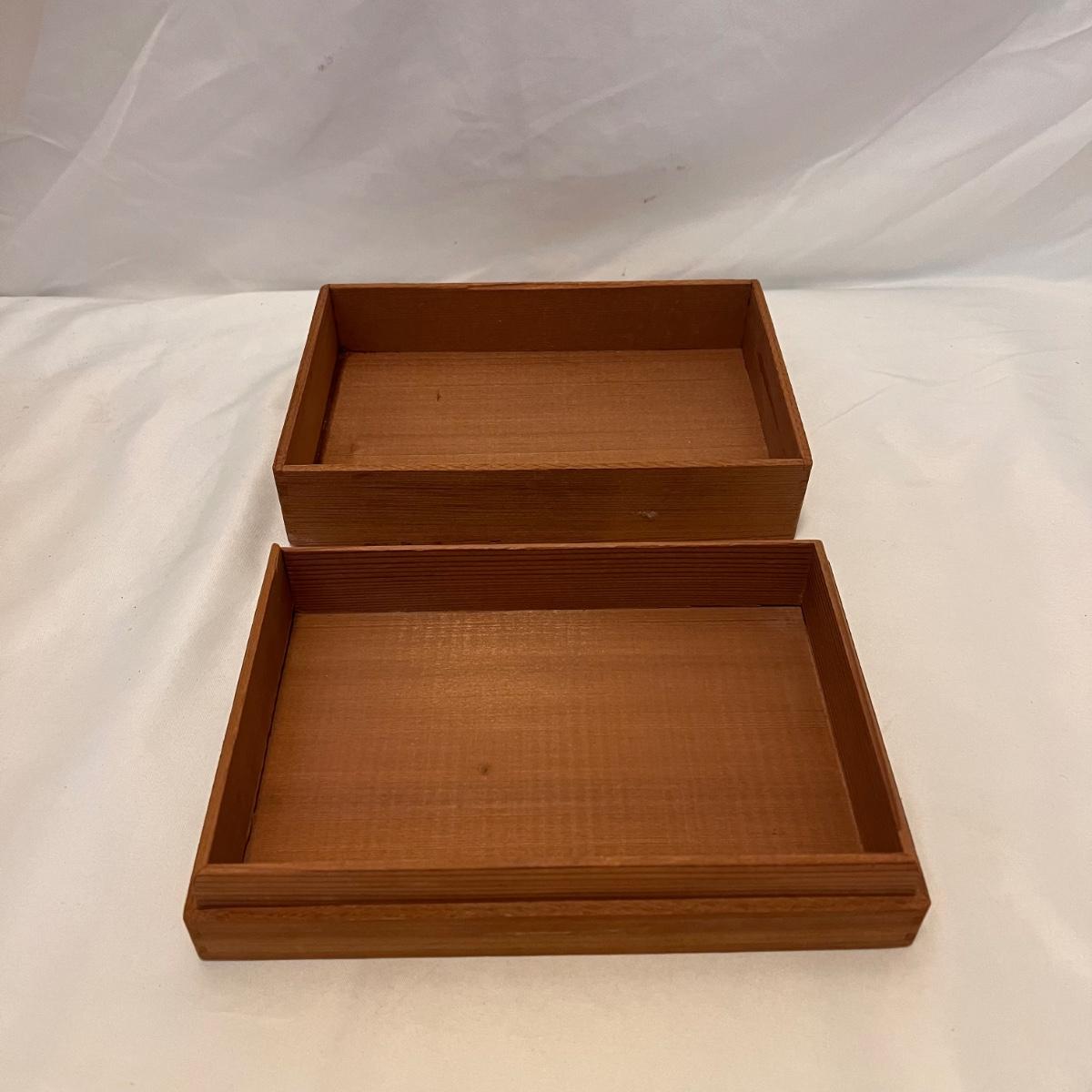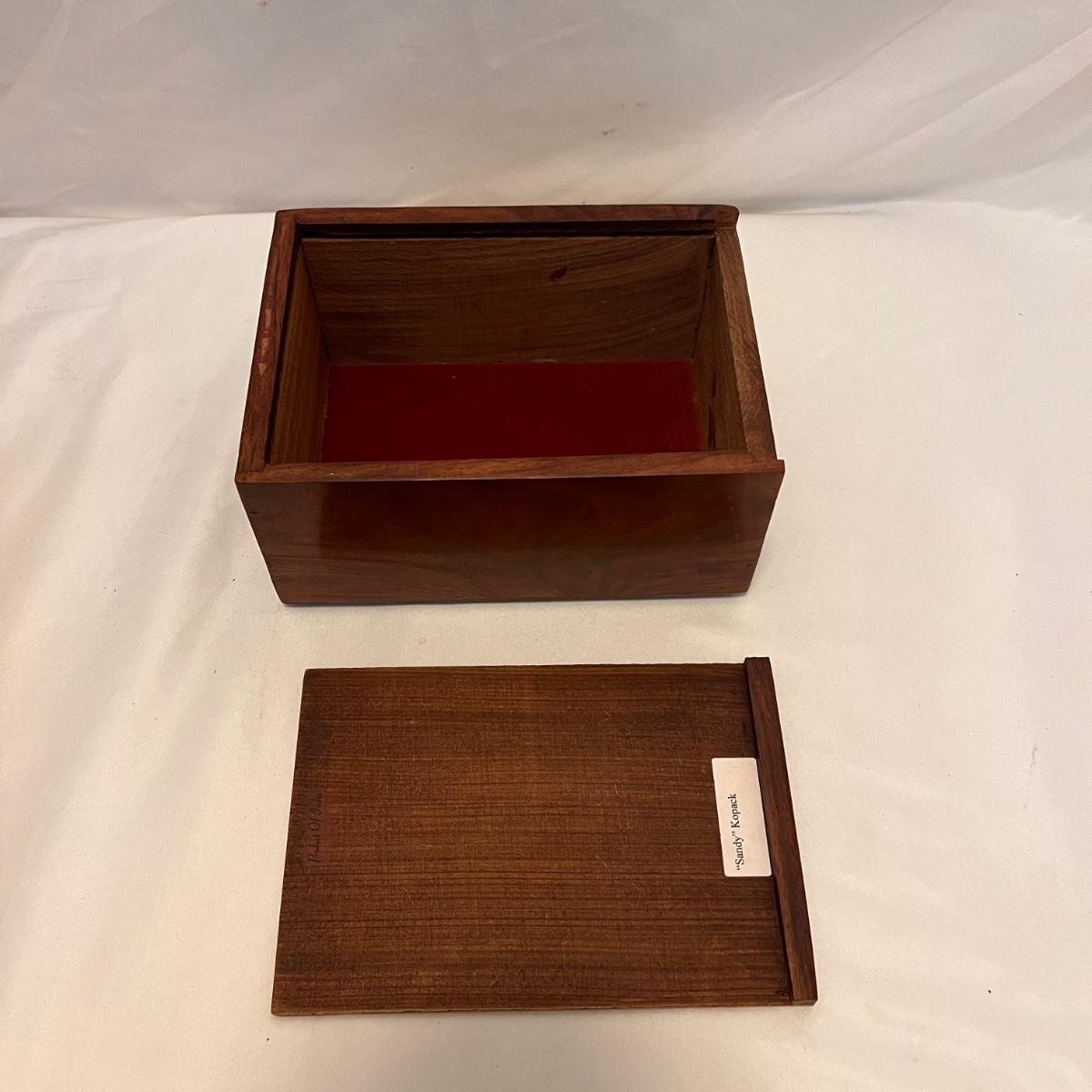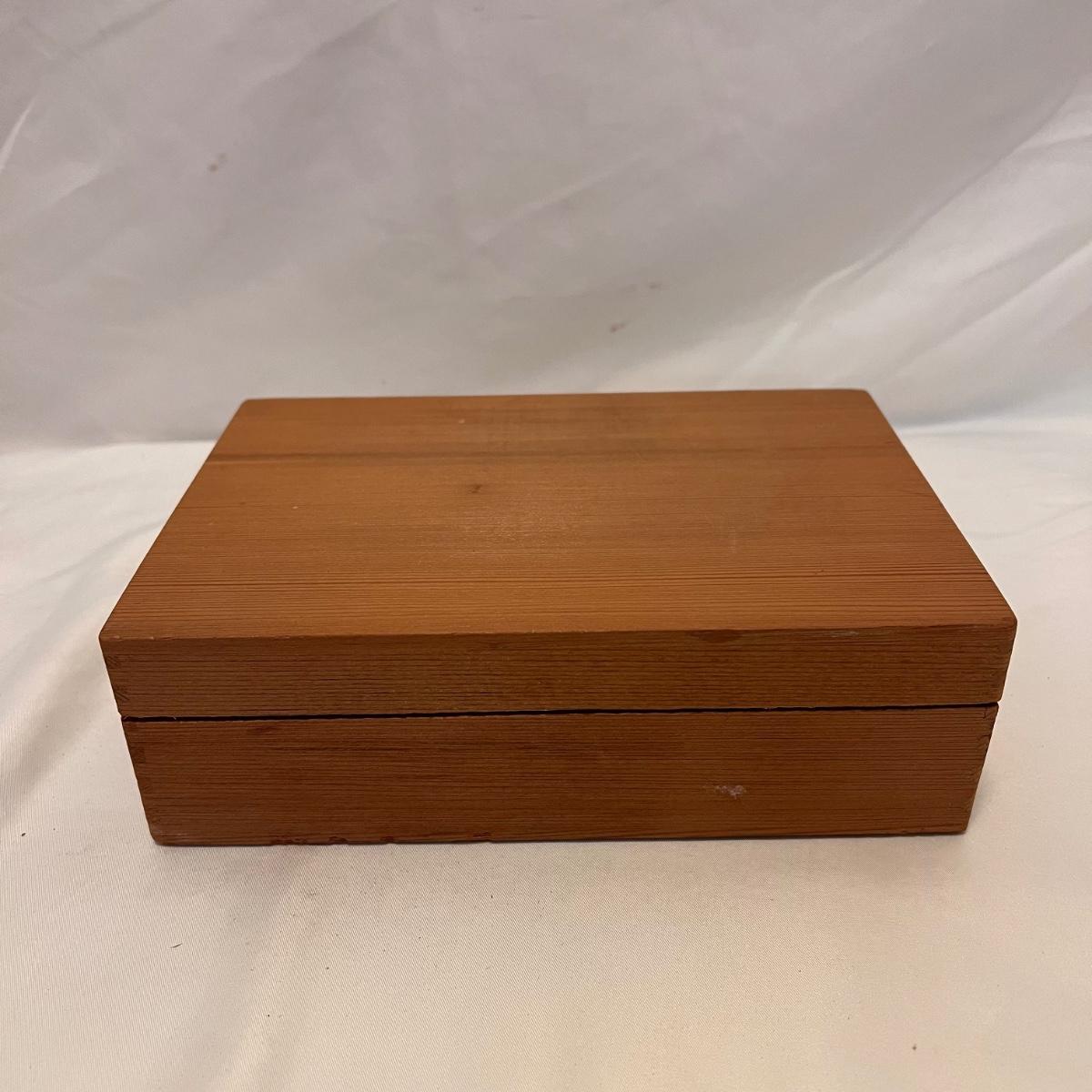 This lot includes five wooden boxes of various sizes. The smallest box measures 8” x 5.5” x 2.5”H and the largest 13” x 6.95” x 5.5”H. The first box individually pictured appears to be a vintage oak index card file/recipe box with dovetailed detail on the sides. The second box with the floral carvings appears to be made in India. The third is just a simple wooden box. The fourth is an old Punch cigar box. Lastly, the fifth appears to be mahogany box with dovetailed detail on the side. The box is lined with green felt and has a spot for a key on the front - no key included. Shipping available.