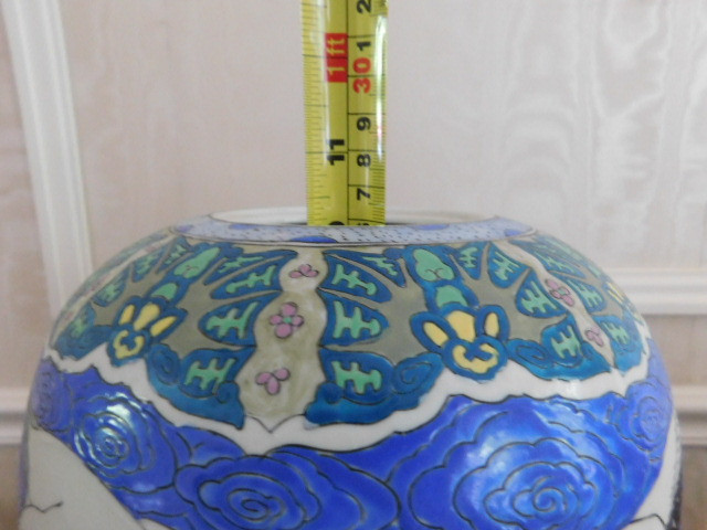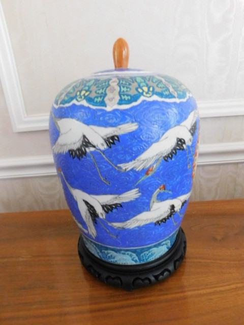 Unit 1: Large Table Ceramic Ginger Jar Asian Theme 10" with Stand