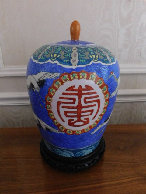 Unit 1:  Large Table Ceramic Ginger Jar Asian Theme 10" with Stand