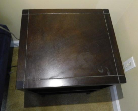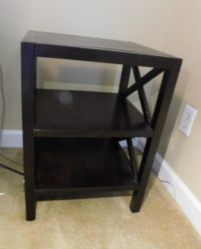 Unit #2:  Dark Wood Finish Shelved Side Table 17"x15"x23"