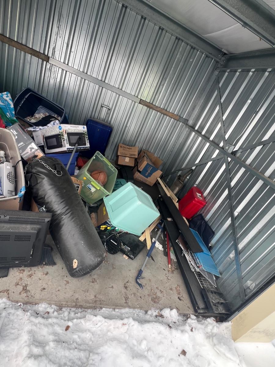 This unit appears to contain a punching bag, boxes, luggage, totes gas can