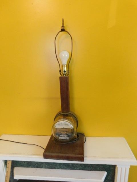 Unit One:  Hand Crafted Electric Meter Table Lamp Dark Finish 31"x9"
