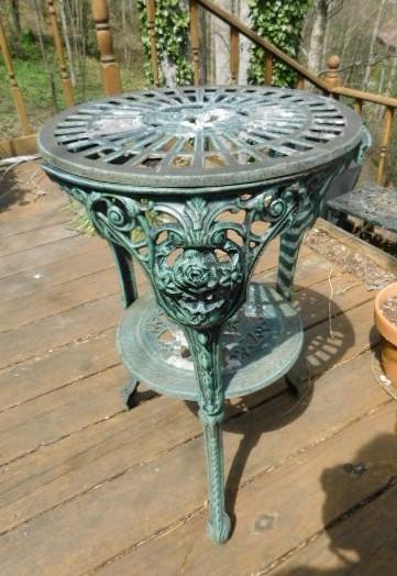 Unit Two: Cast Metal Outdoor Patio Side or Plant Table 16"x25" will need cleaning