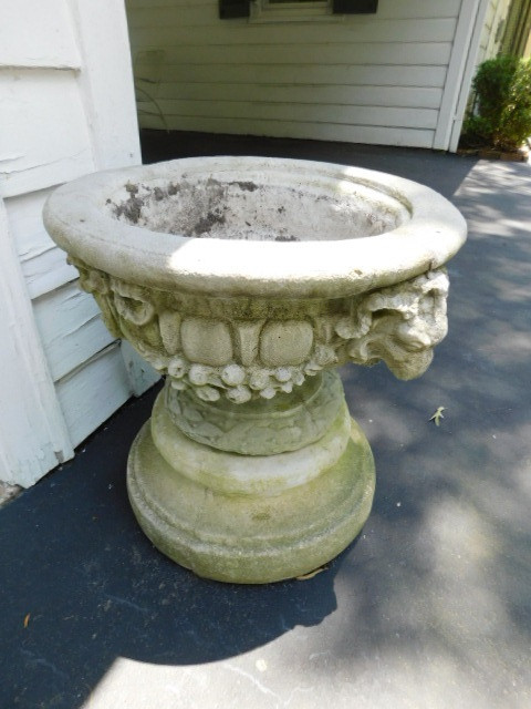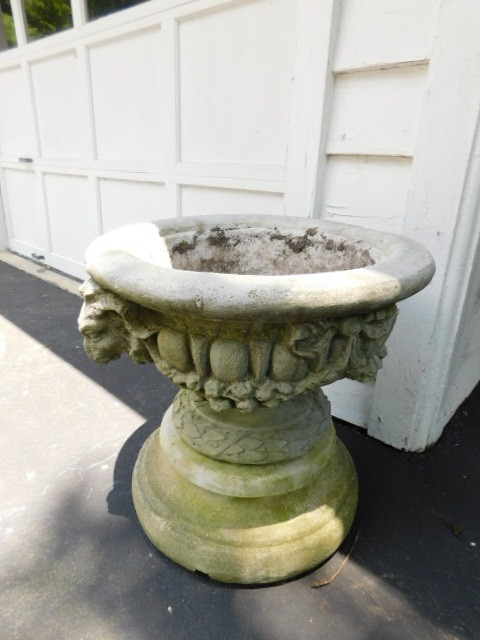 Unit Two: Concrete Planter Lion Head Urn needs cleaning