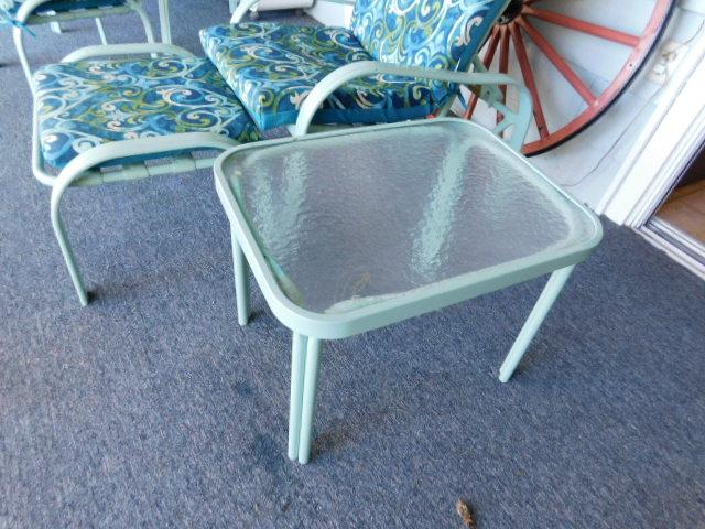 Unit Two: Patio Lounger with Ottoman and Square Side Table items very heavy and high quality. Cushions seem to be in good shape.