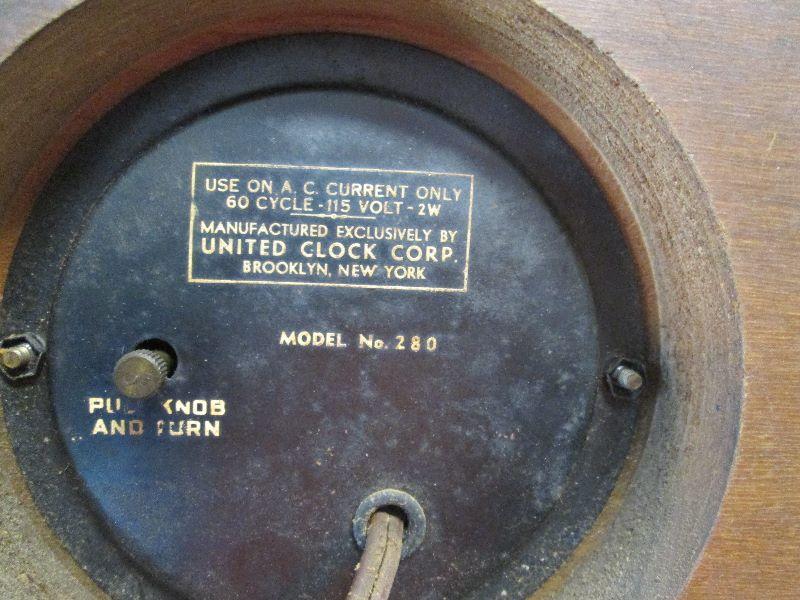 United Clock Corp. Wood Electric Mantle Clock #280 Convex Bubble Glass