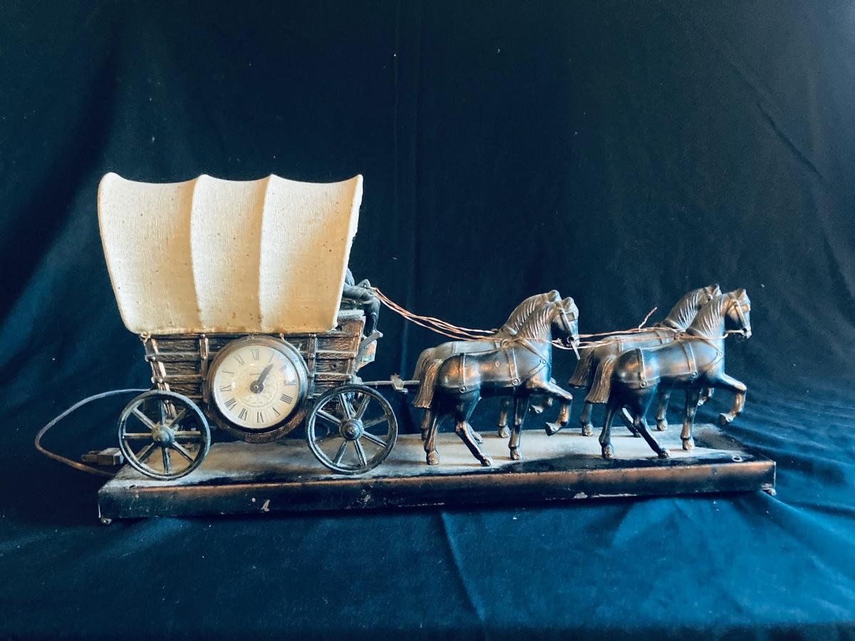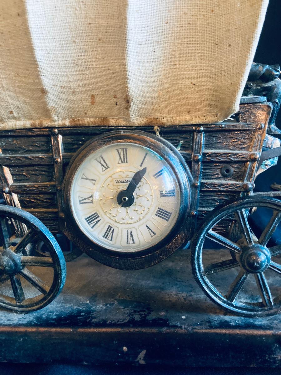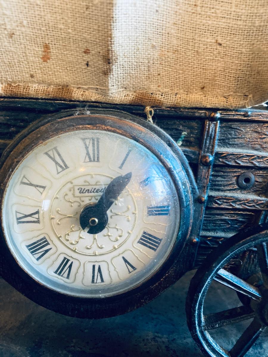 THIS CLOCK IS MISSING A WHEEL ON THE CARRIAGE