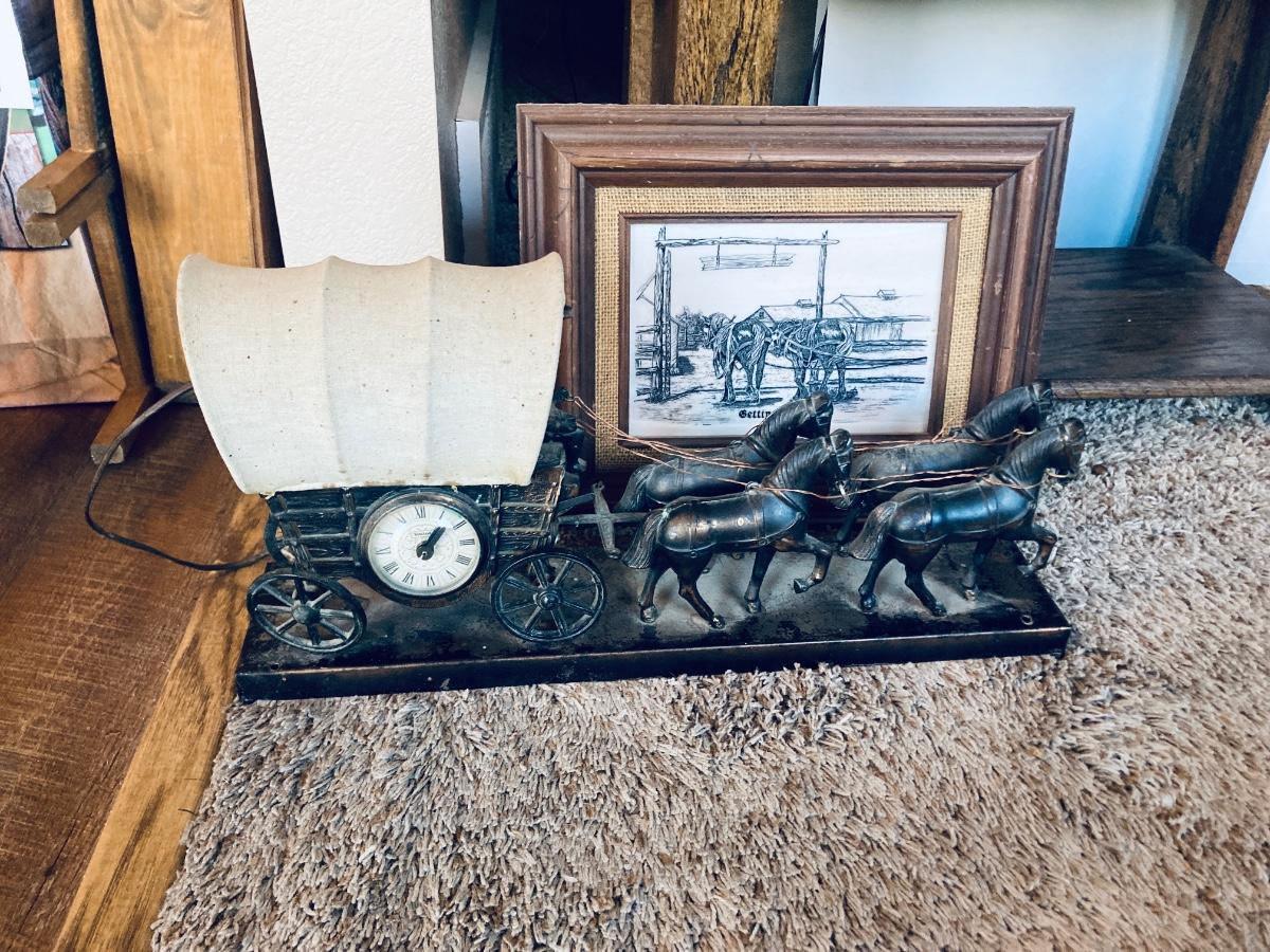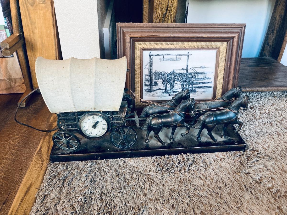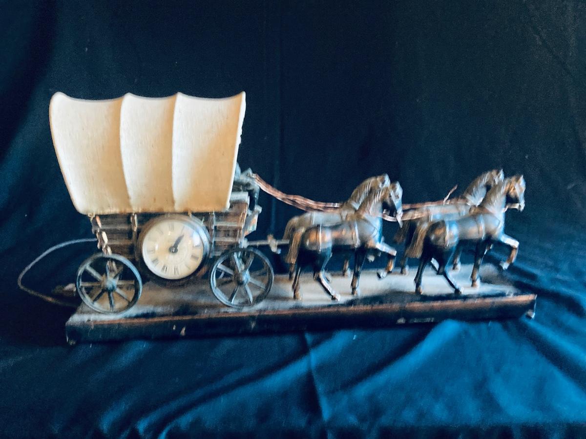 THIS CLOCK IS MISSING A WHEEL ON THE CARRIAGE