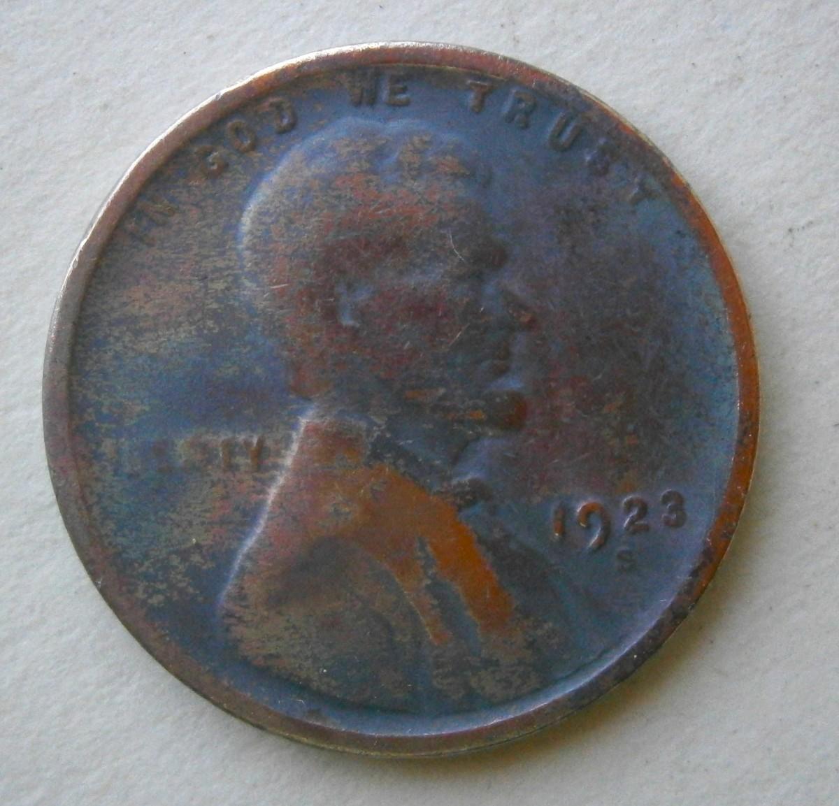 UNITED STATES 1923-S Wheat Penny, copper, circulated.