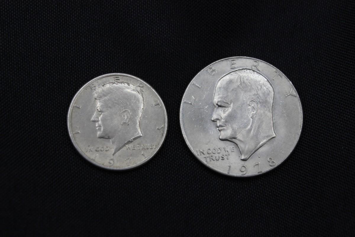 1971 Kennedy Half Dollar & a 1978 Eisenhower Silver Dollar. See photos for condition.