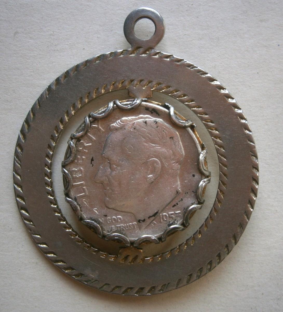 UNITED STATES FDR Heads/Tail spinner Pendant, uses 2 silver dimes