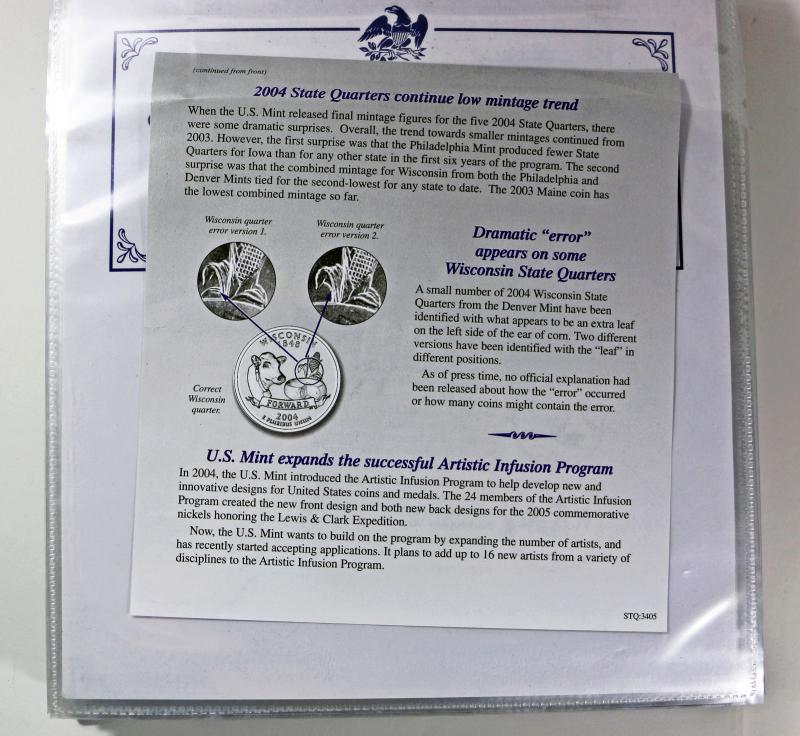 United States Statehood Quarters Collection Coins & Stamps in Album