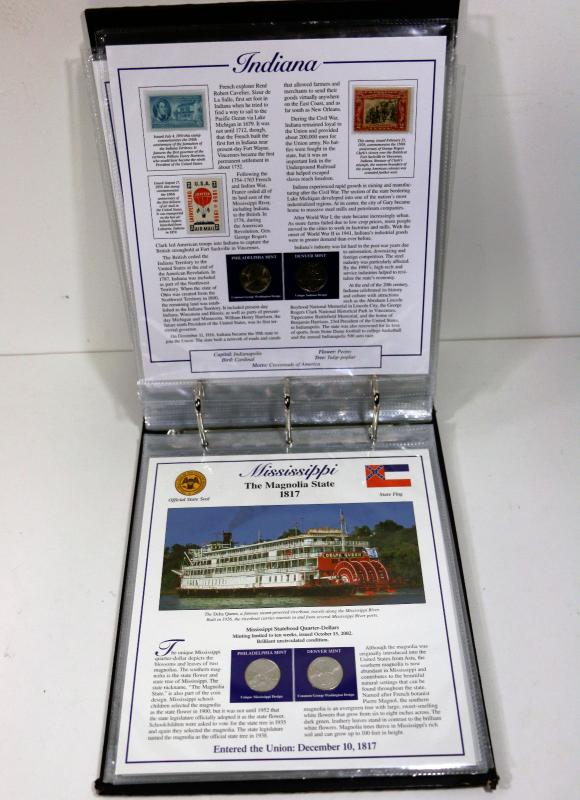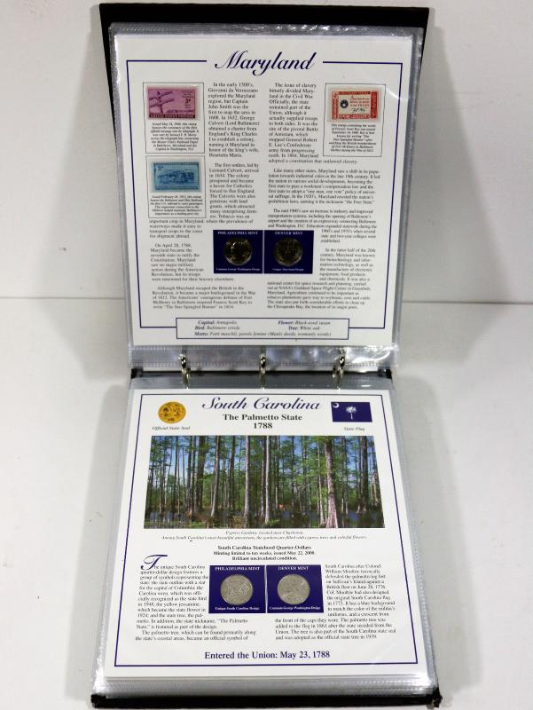 United States Statehood Quarters Collection Coins & Stamps in Album
