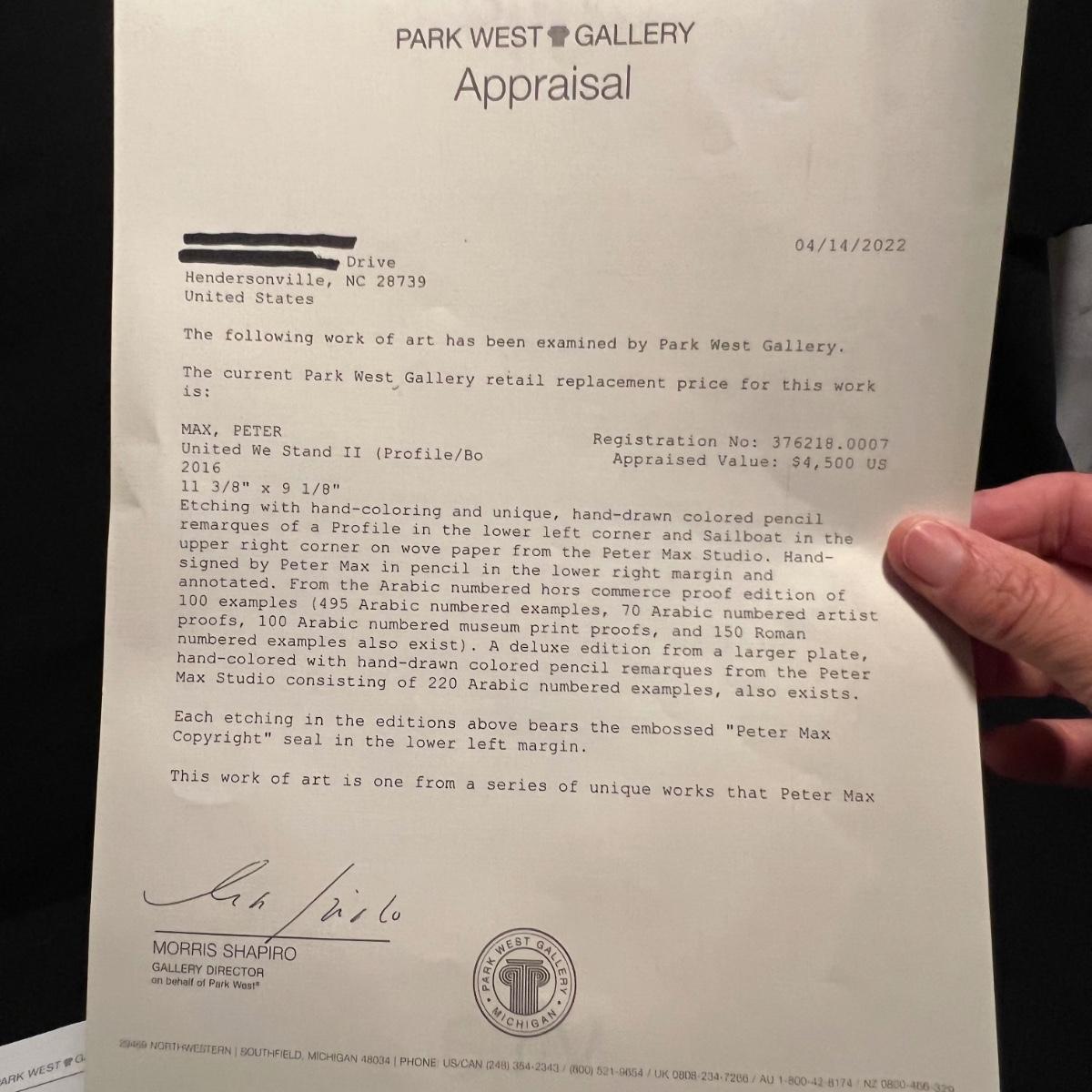 “United We Stand II” By Peter Max Inc. COA & Signed (FE-RG)