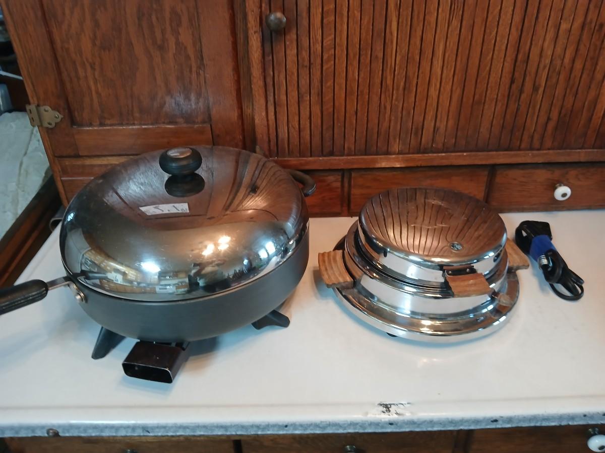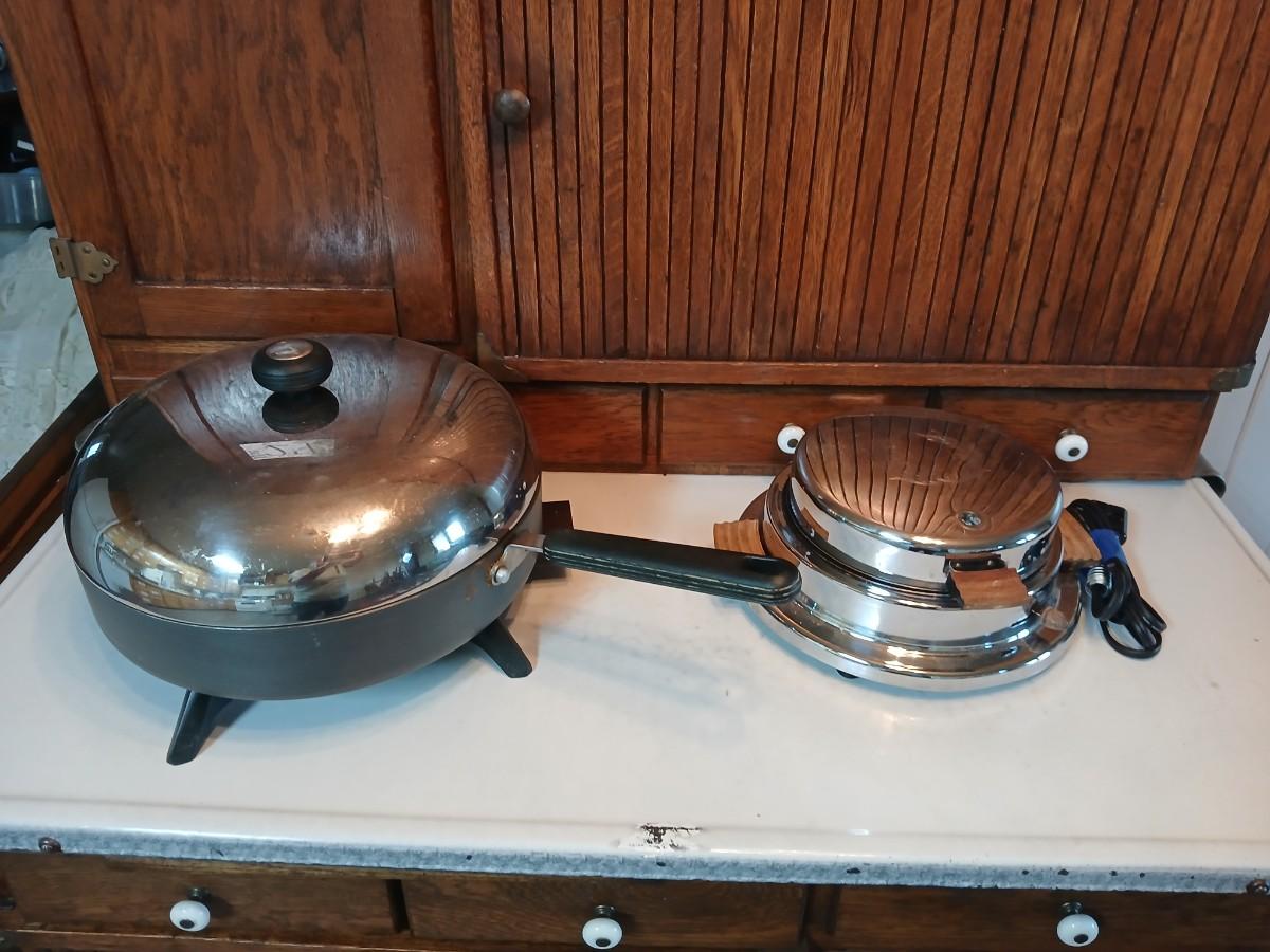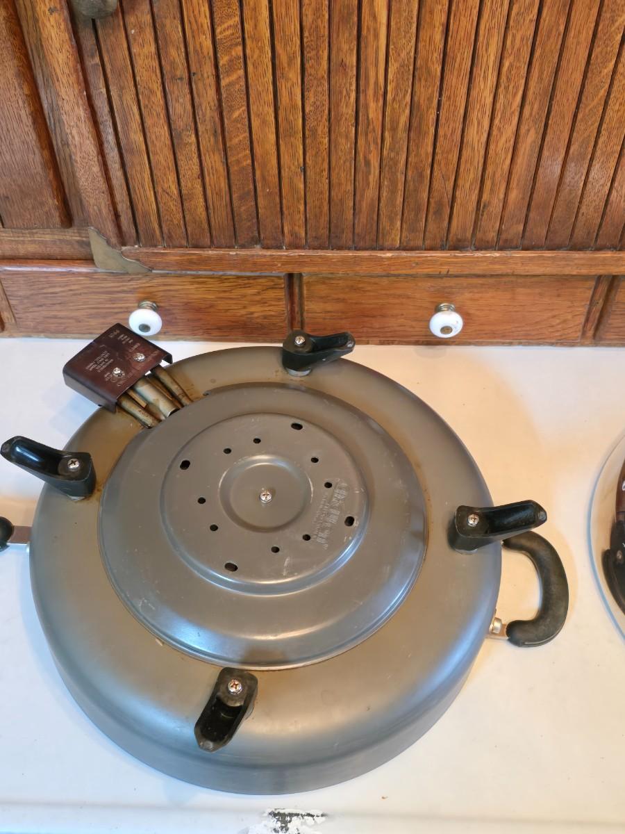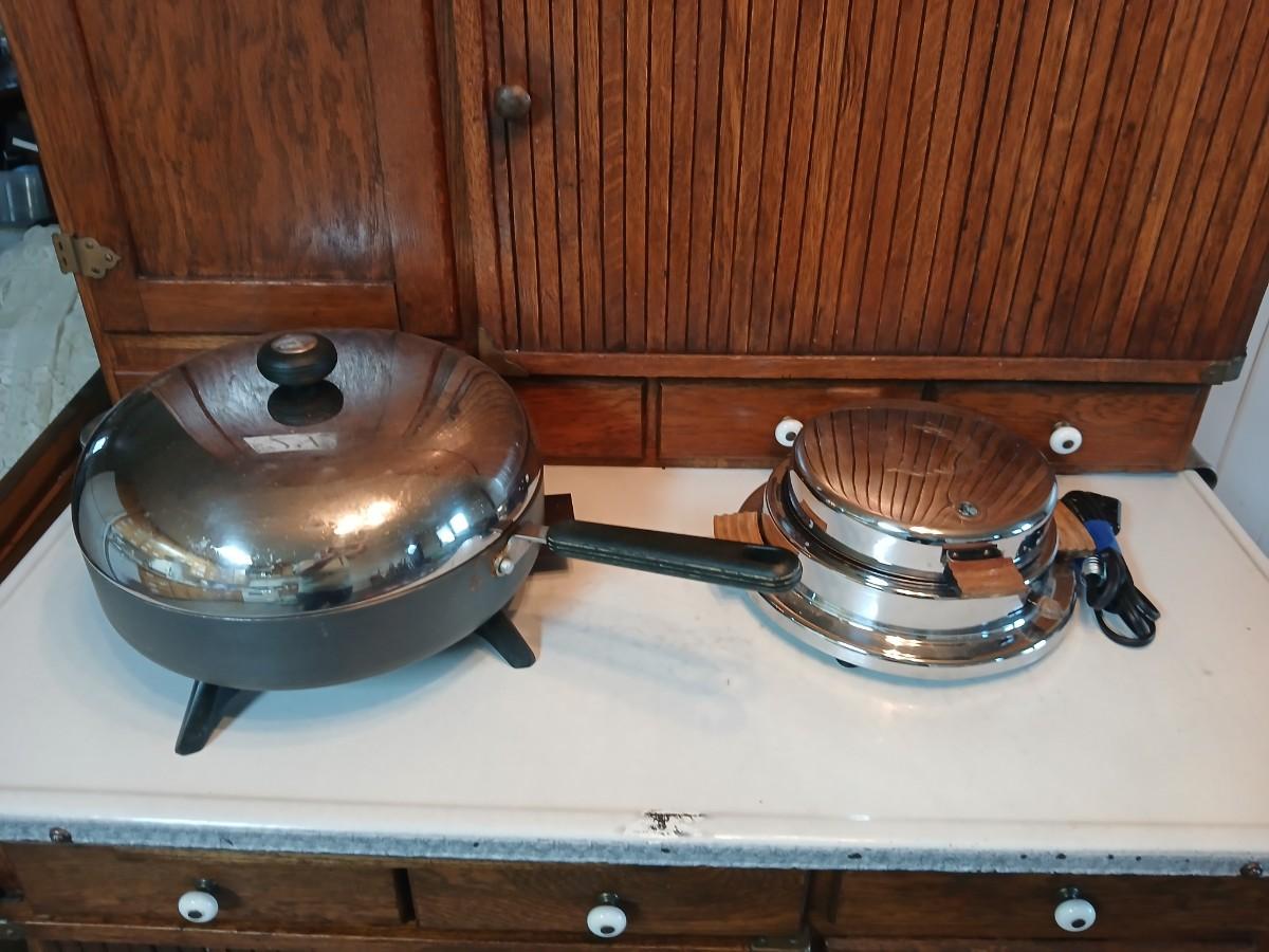 Vintage Dominion Electric waffle iron and a Circulon electric skillet