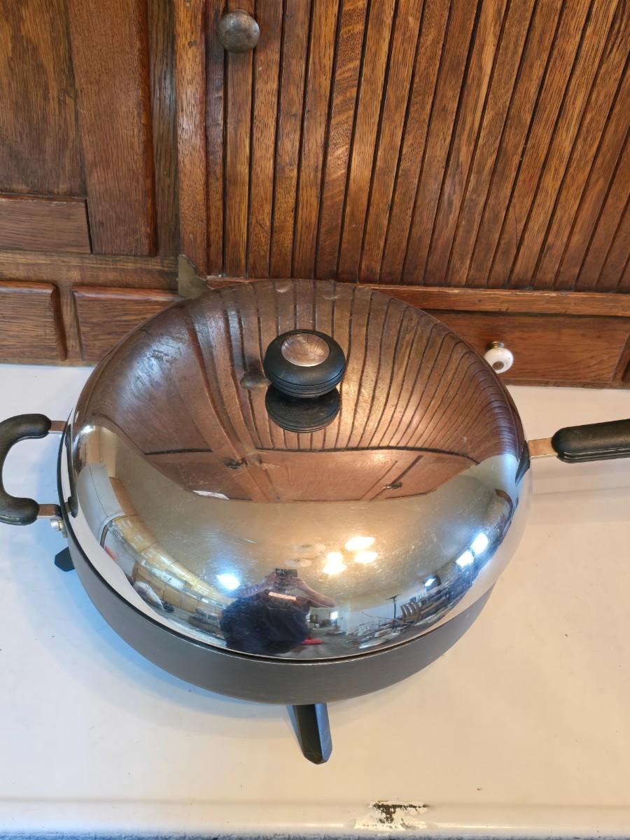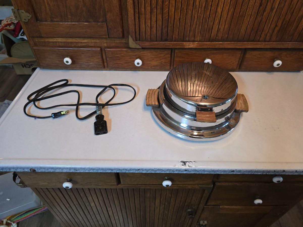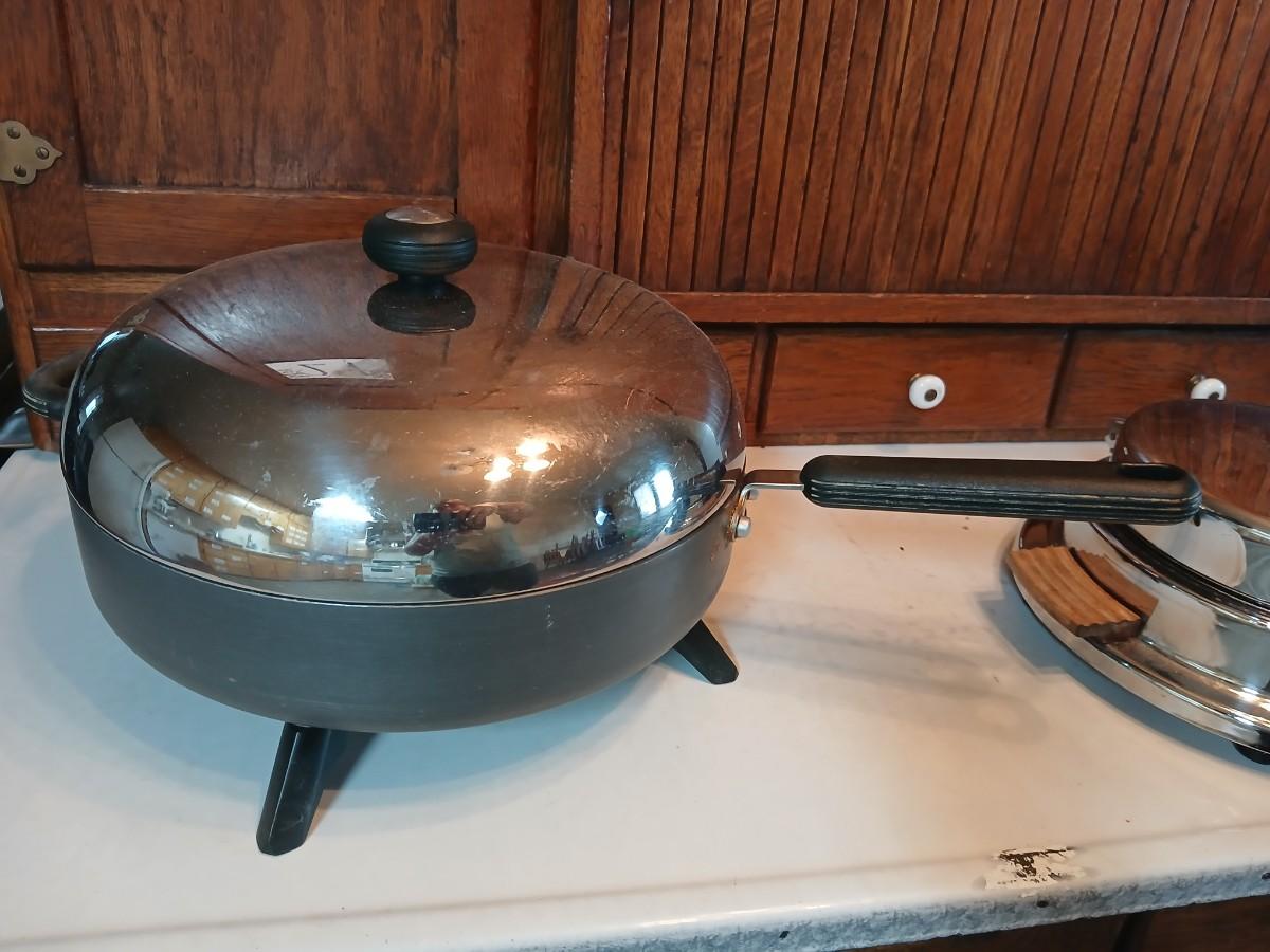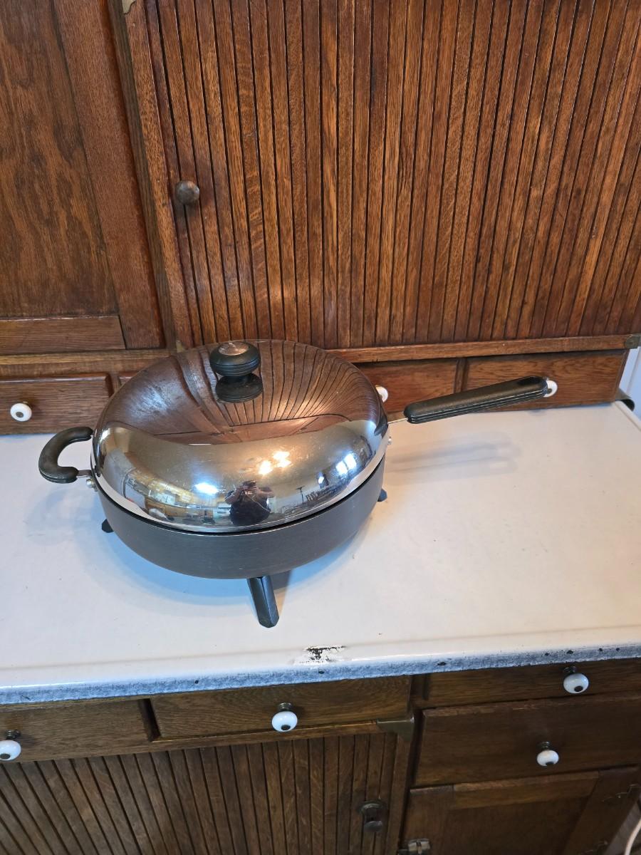Vintage Dominion Electric waffle iron and a Circulon electric skillet