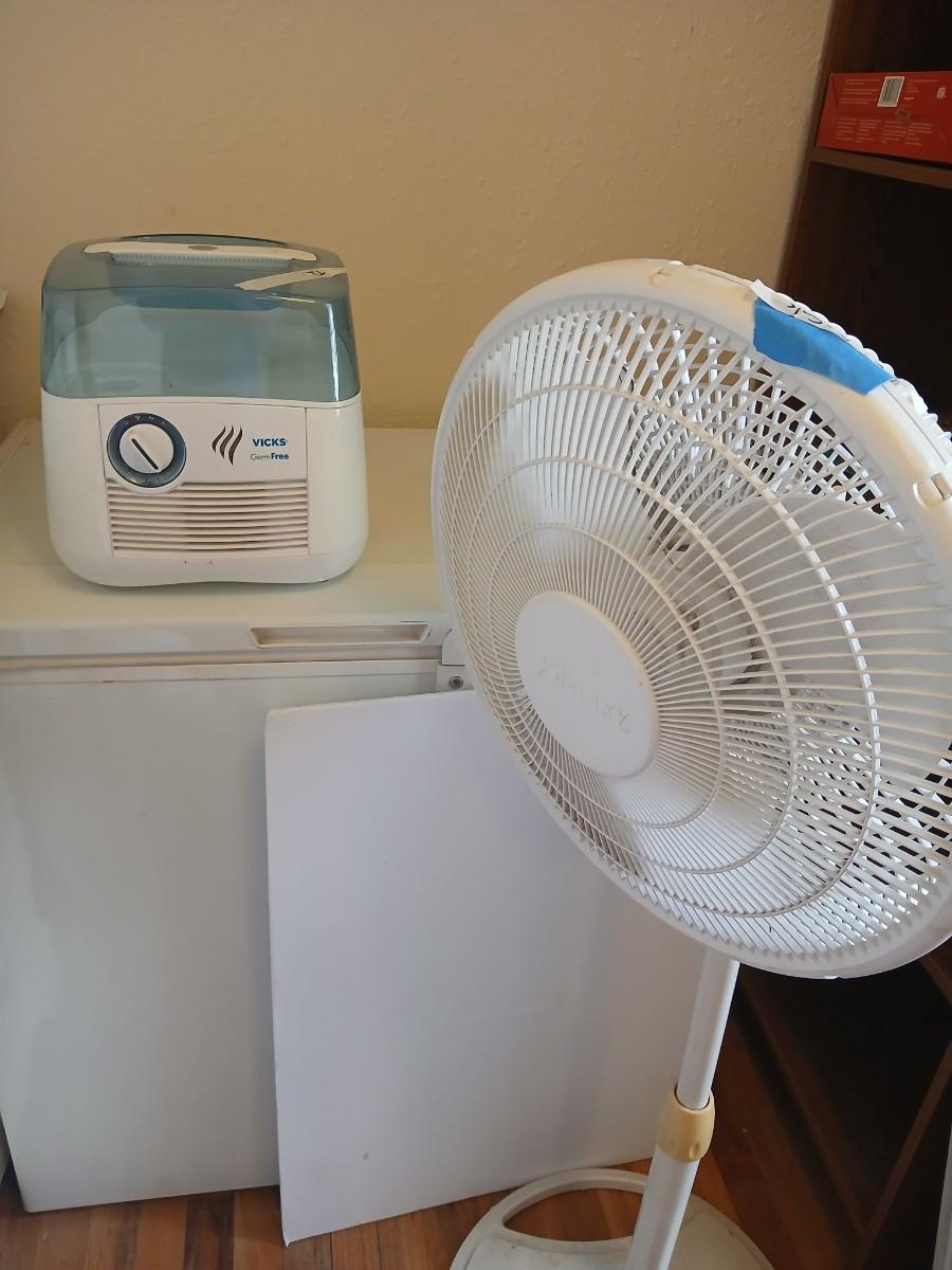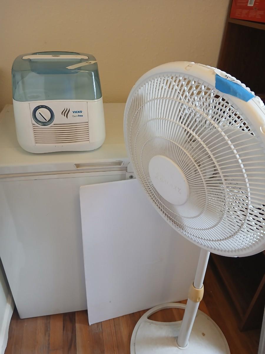 Multi speed free standing Galaxy fan with Vicks germ free humdifier