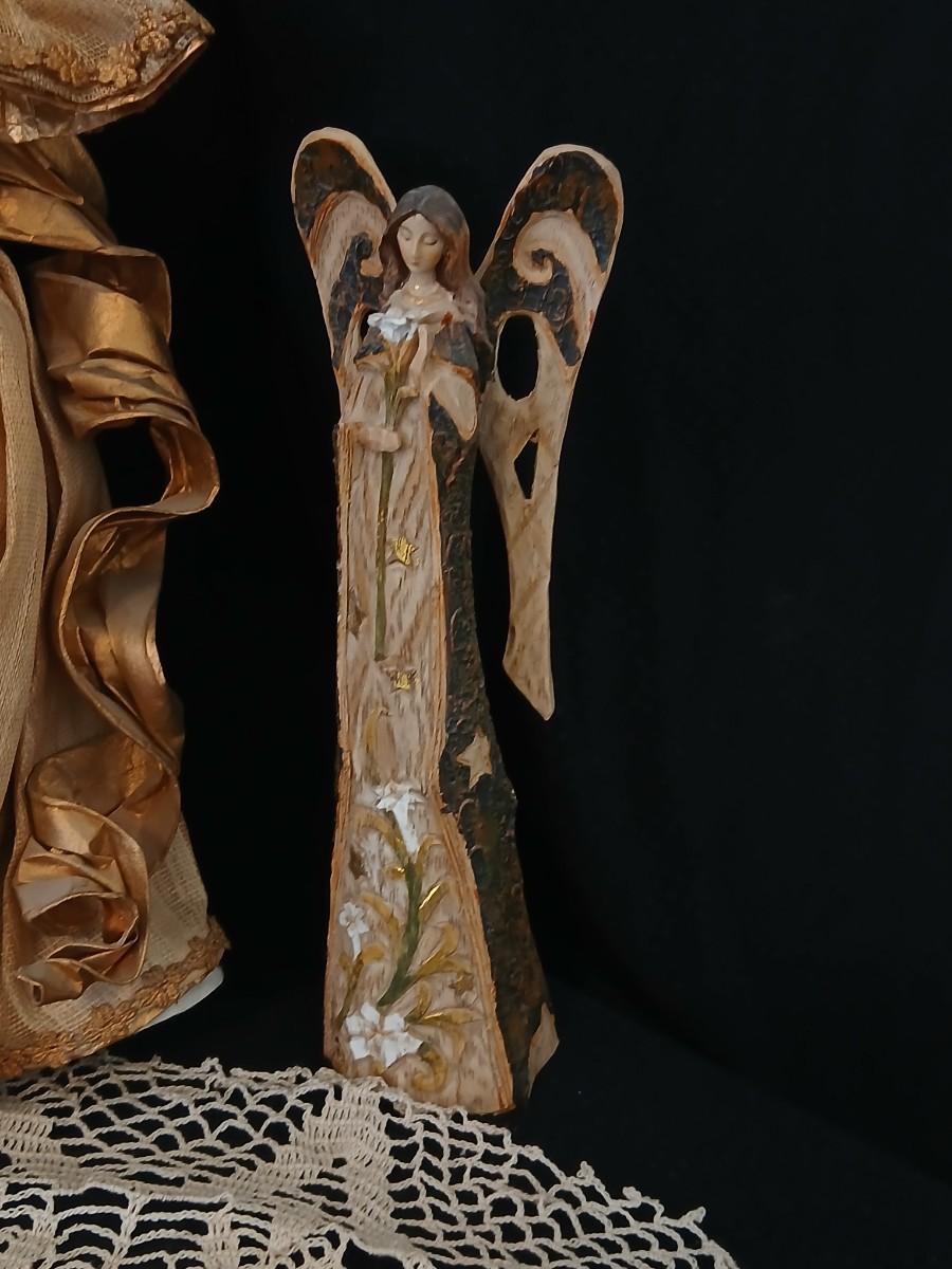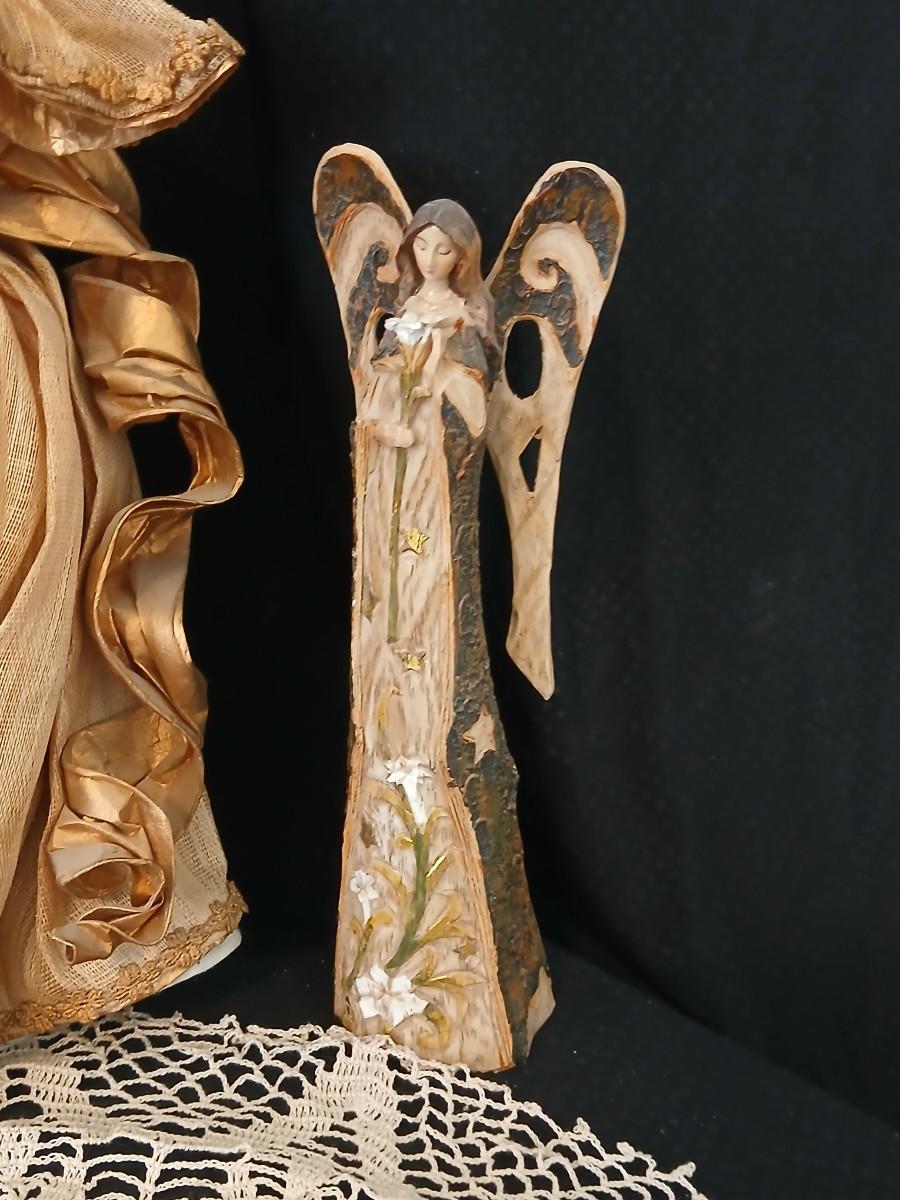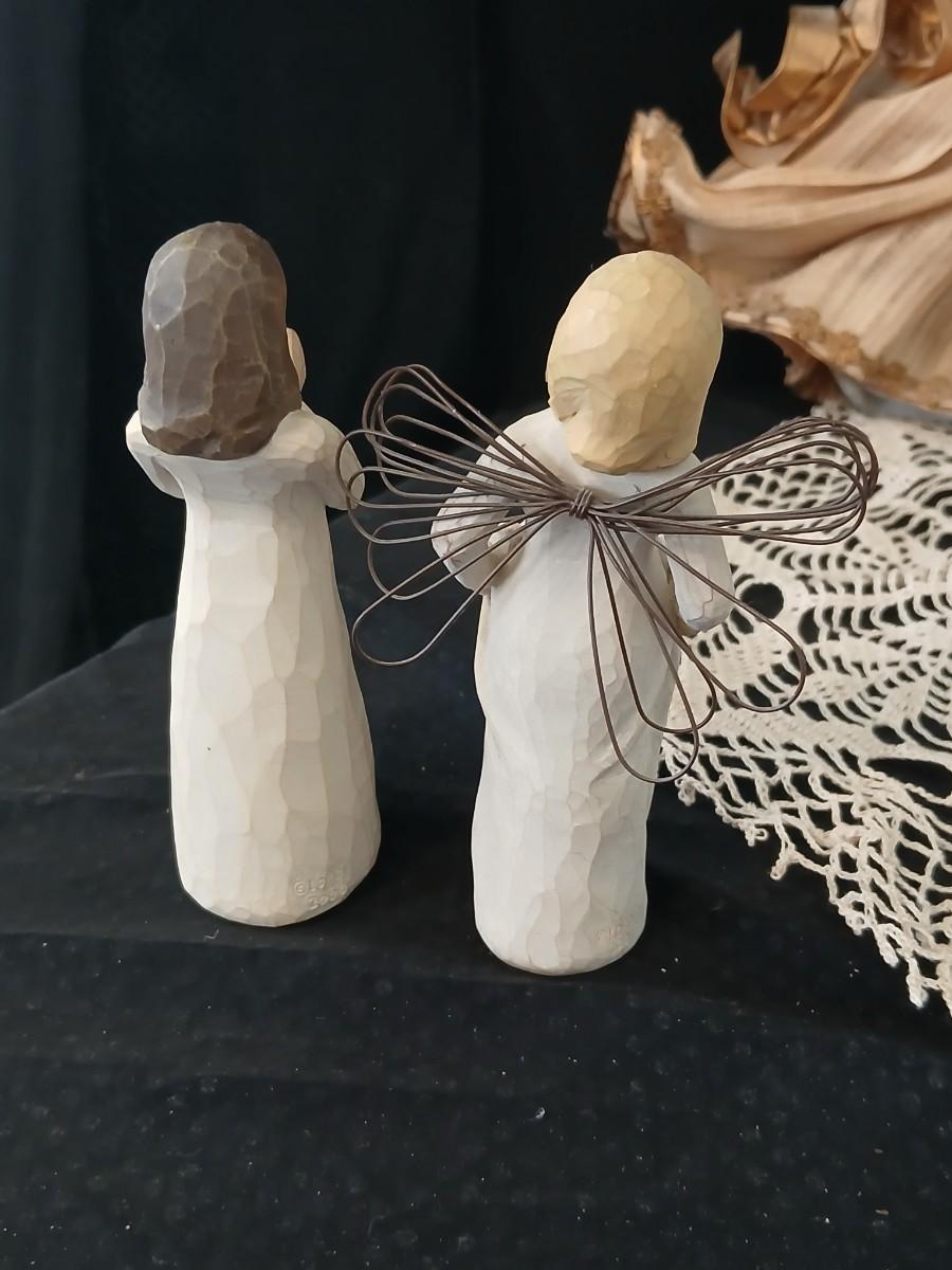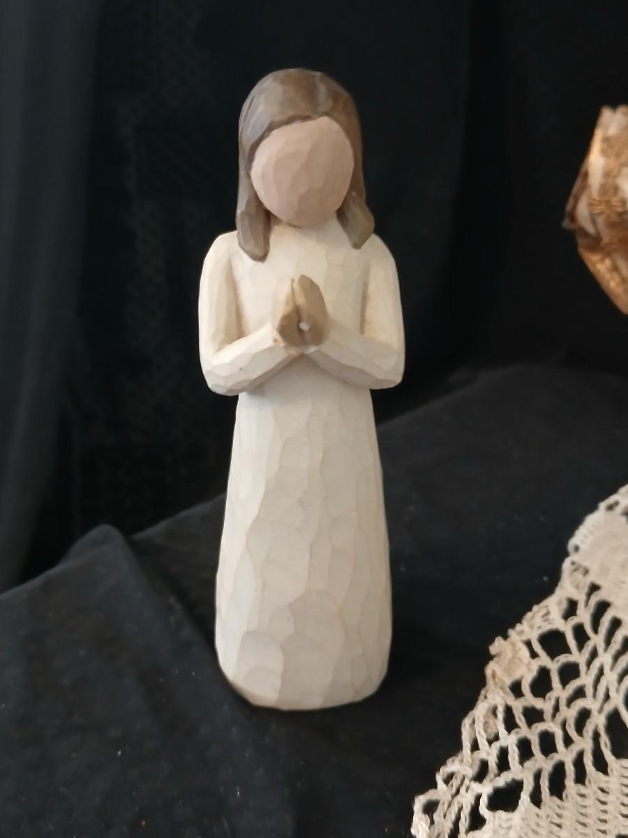 Collection of Angels - Willow tree angels and a large doily