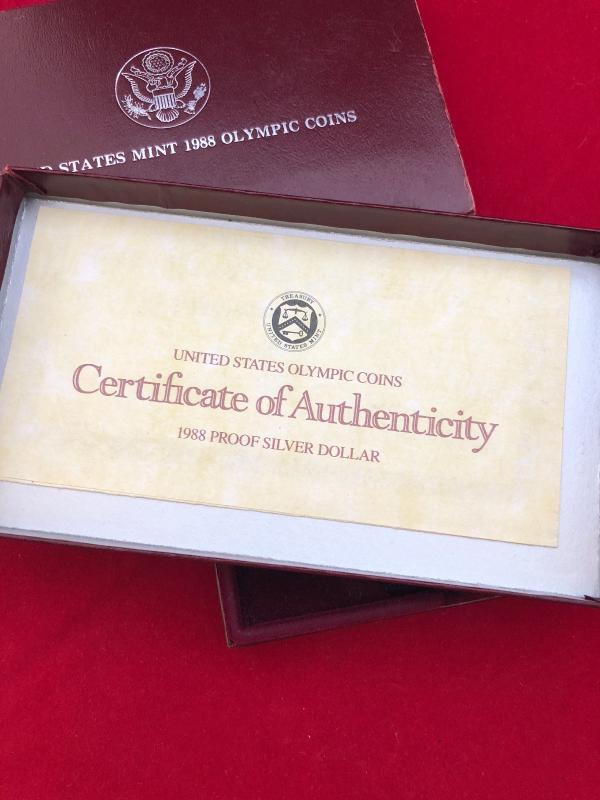 Unityed States Mint 1988 Olympic Coin Silver Dollar $1 90% AU