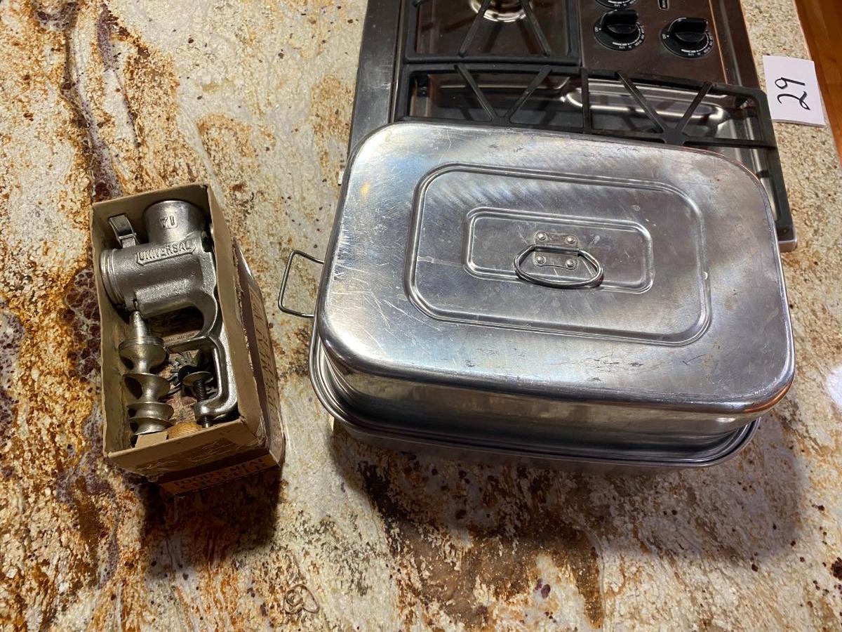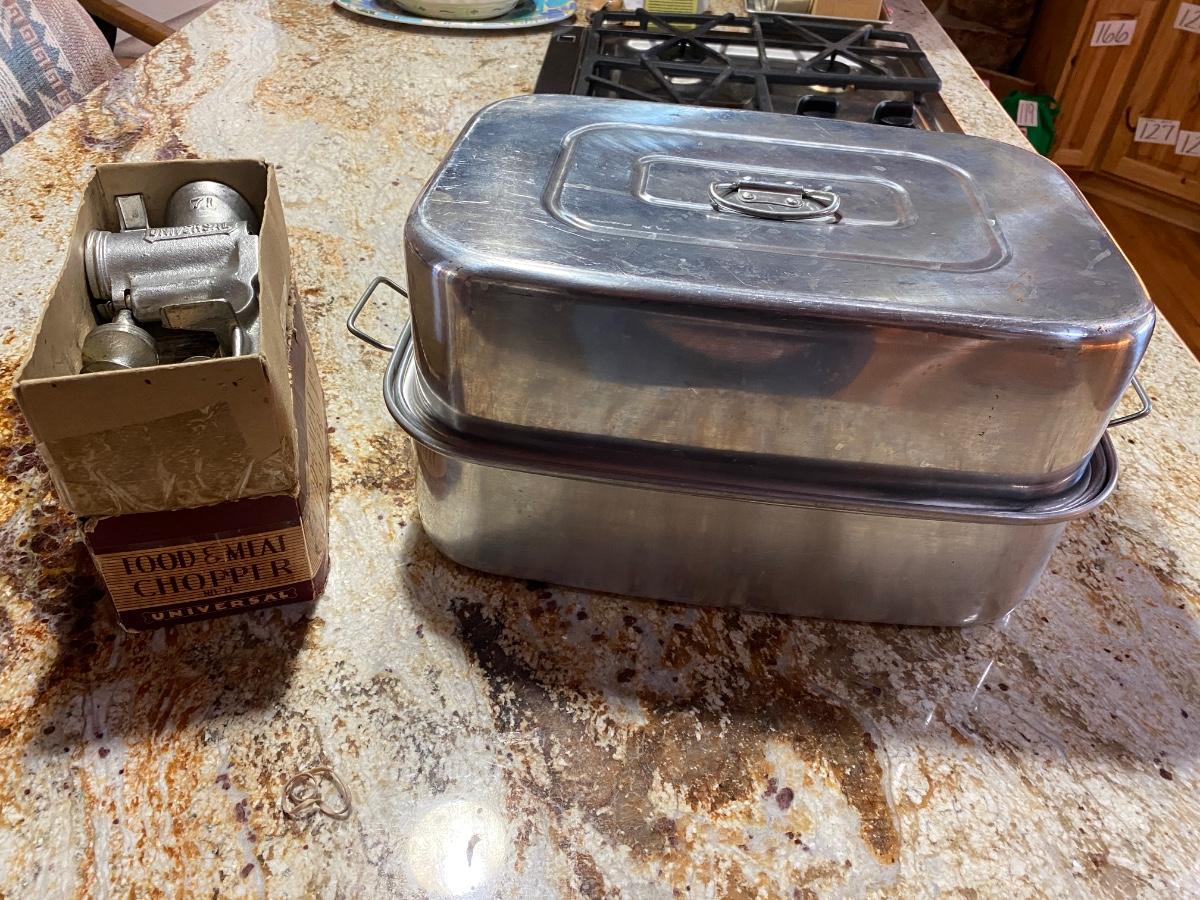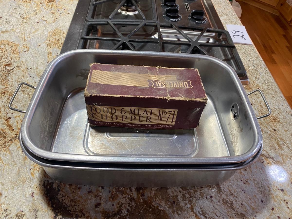 UNIVERSAL FOOD AND MEAT CHOPPER NO 71 AND S.S. ROASTING PAN