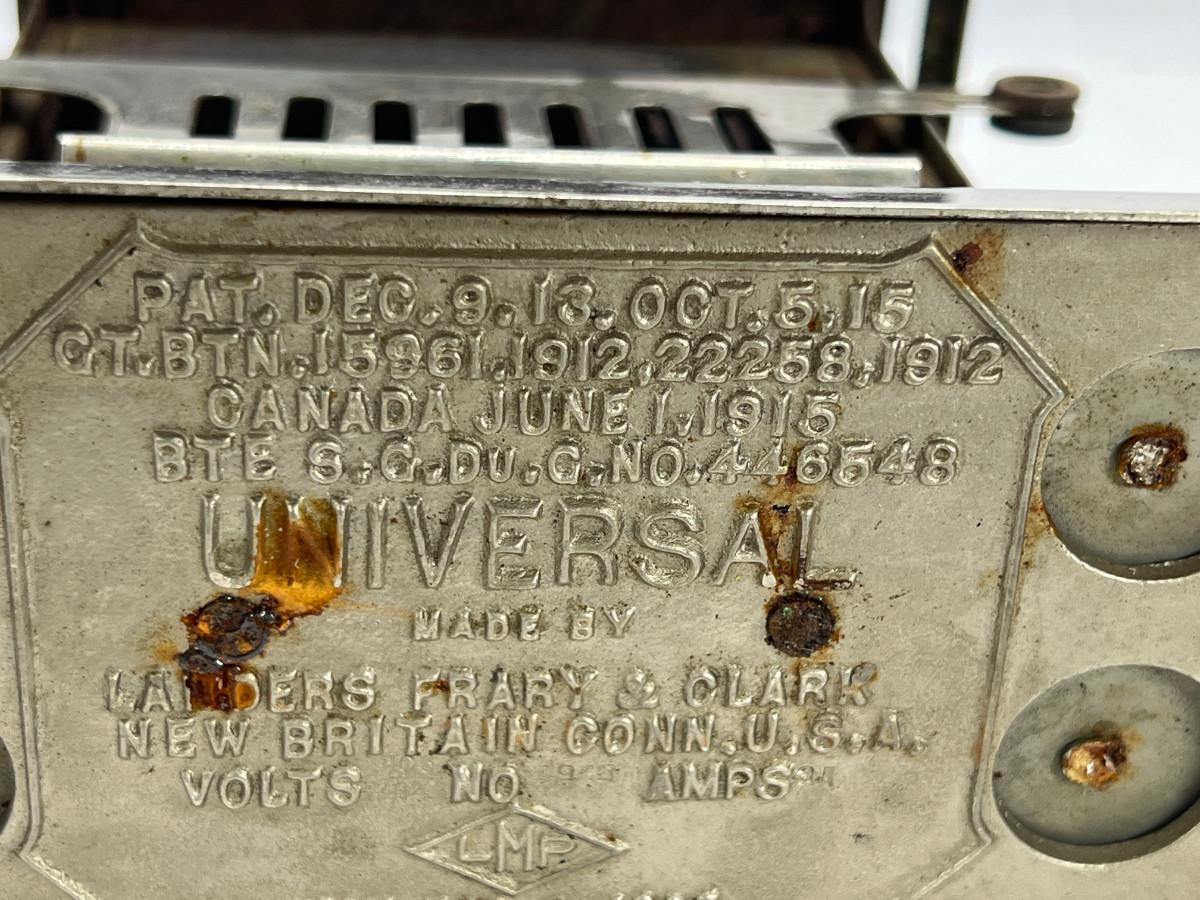 Vintage Universal, Landers Frary & Clark Toaster Number: E946. This is a really nice toaster in good condition for age No cord Unit is being sold as a "non-working" vintage electronic device that should be gone over by a qualified technician prior to use. May have rust, corrosion or other flaws see pictures.