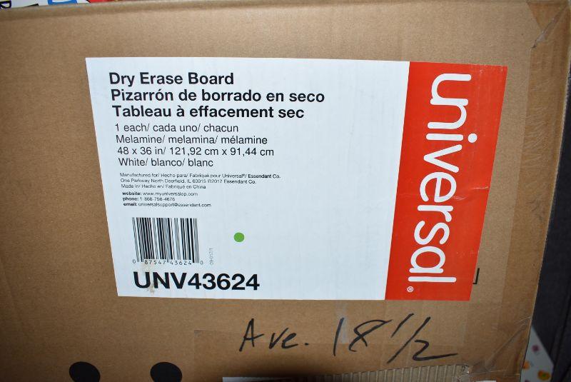 Universal Melamine Dry Erase Board, 48" x 36", Satin-Finished Aluminum Frame - New, $35 Retail