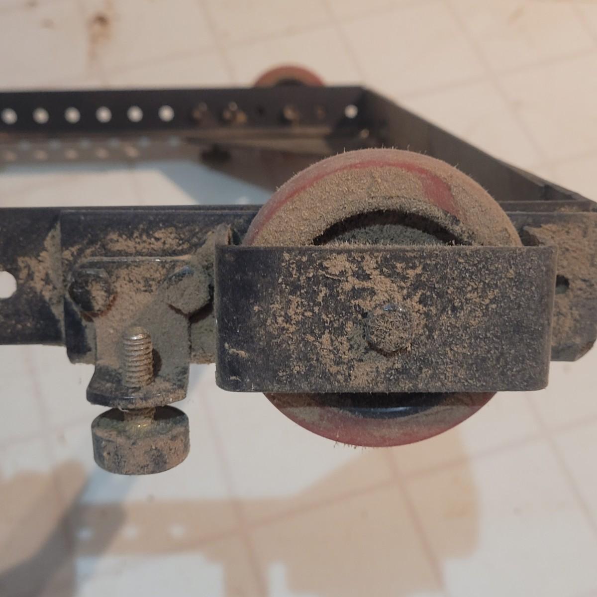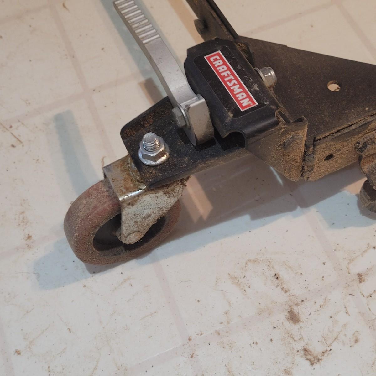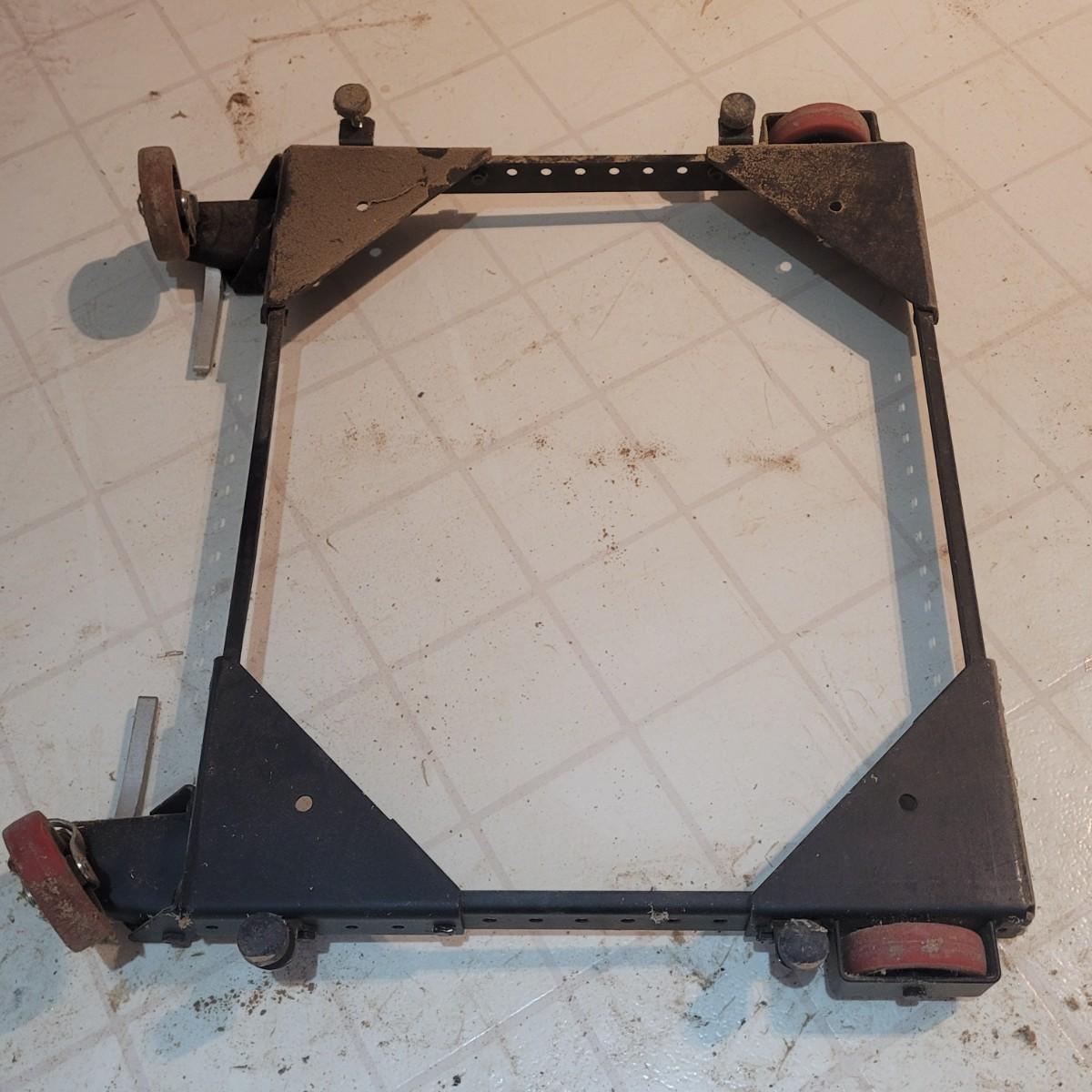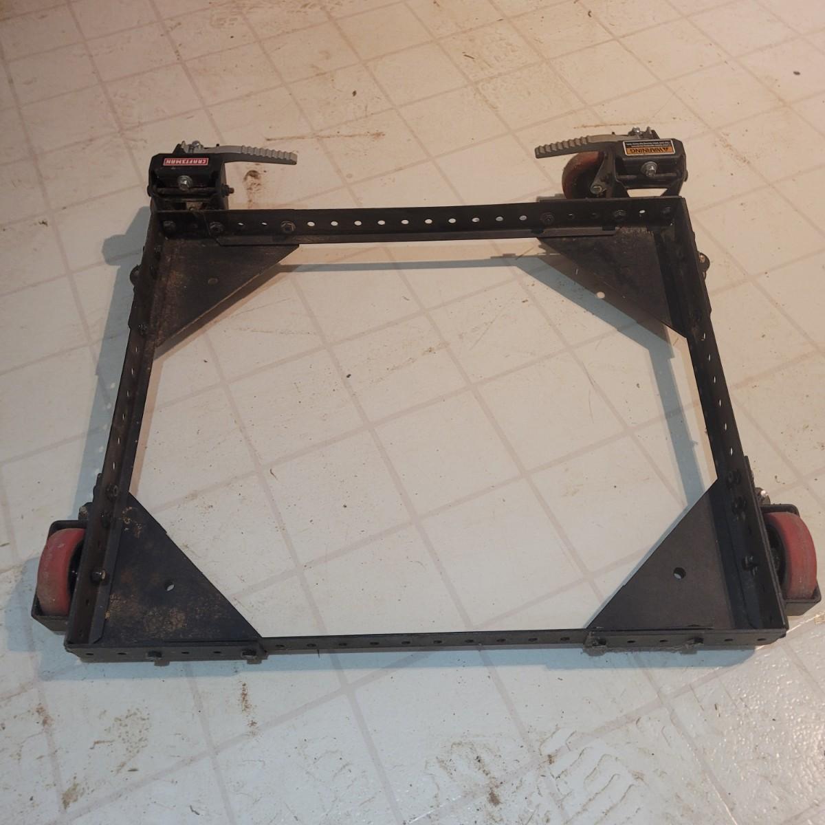 Craftsman brand universal mobile tool base. Features two stationary and two spinning wheels. One set of wheels locks. Made from solid metal. Item measures 25" x 23" x 5"H. Four 12” extension parts are included as well.