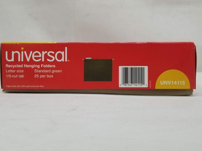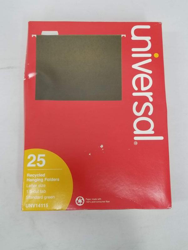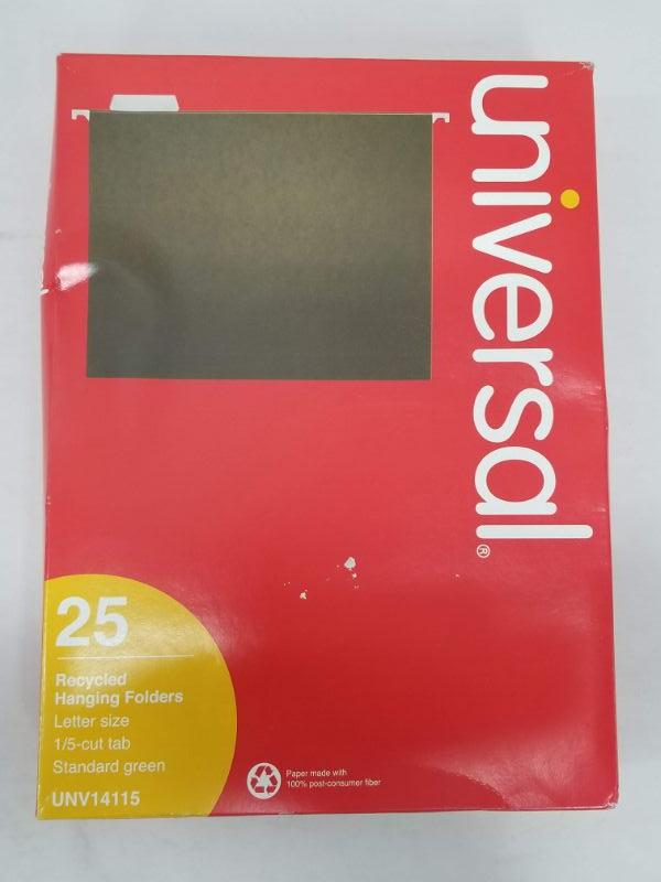 Universal Recycled Hanging Folders - 25pk, 1/5-cut Tab, Standard Green - New