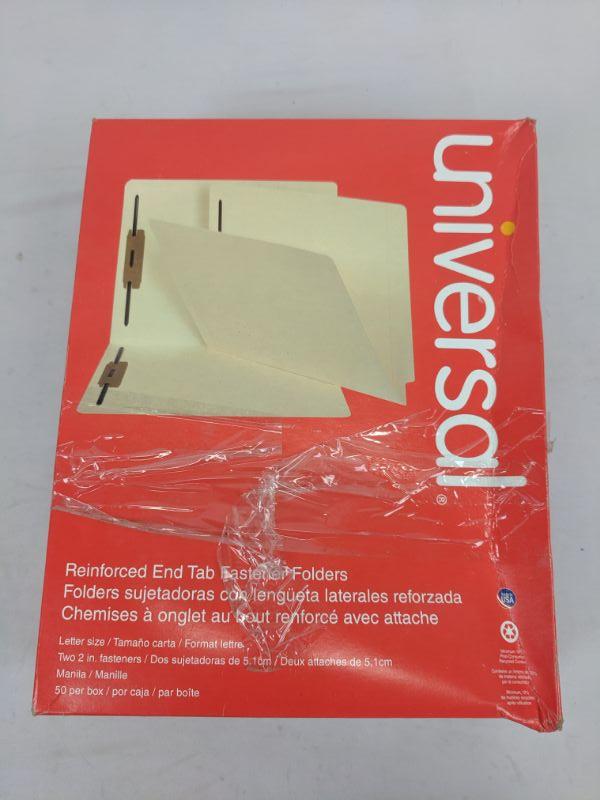 Universal Reinforced End Tab Fastener Folders, 50 Per Box - New