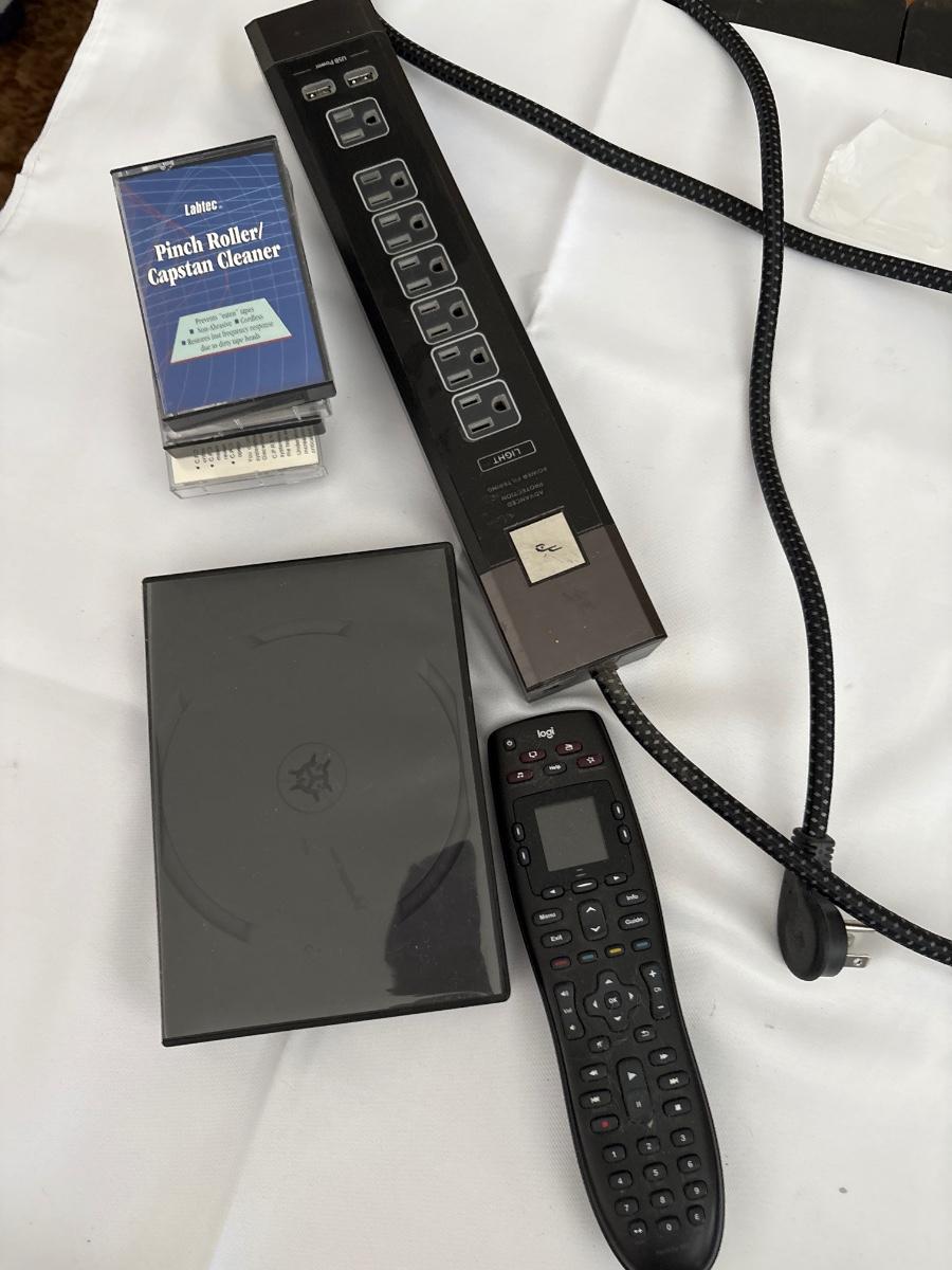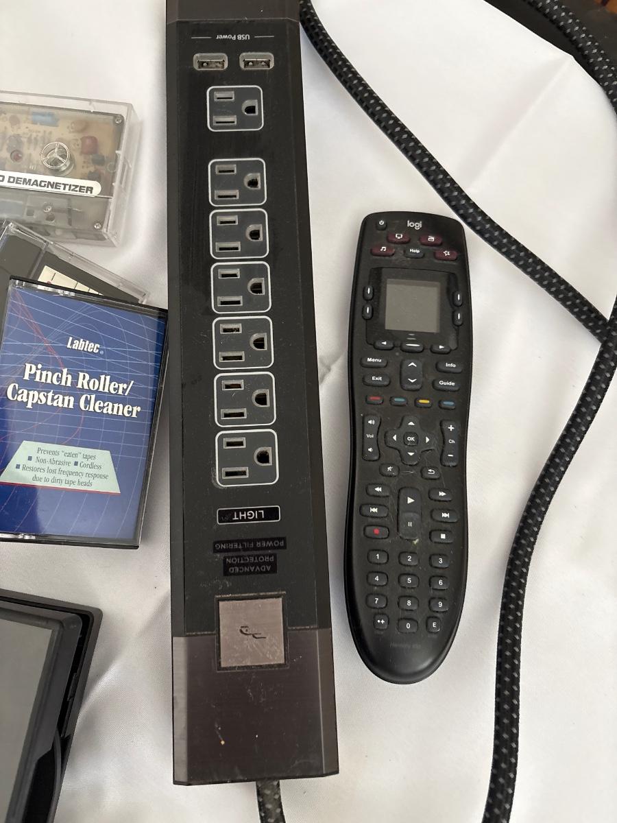 Universal, remote control, CD holder, cassette, cleaners, and power strip