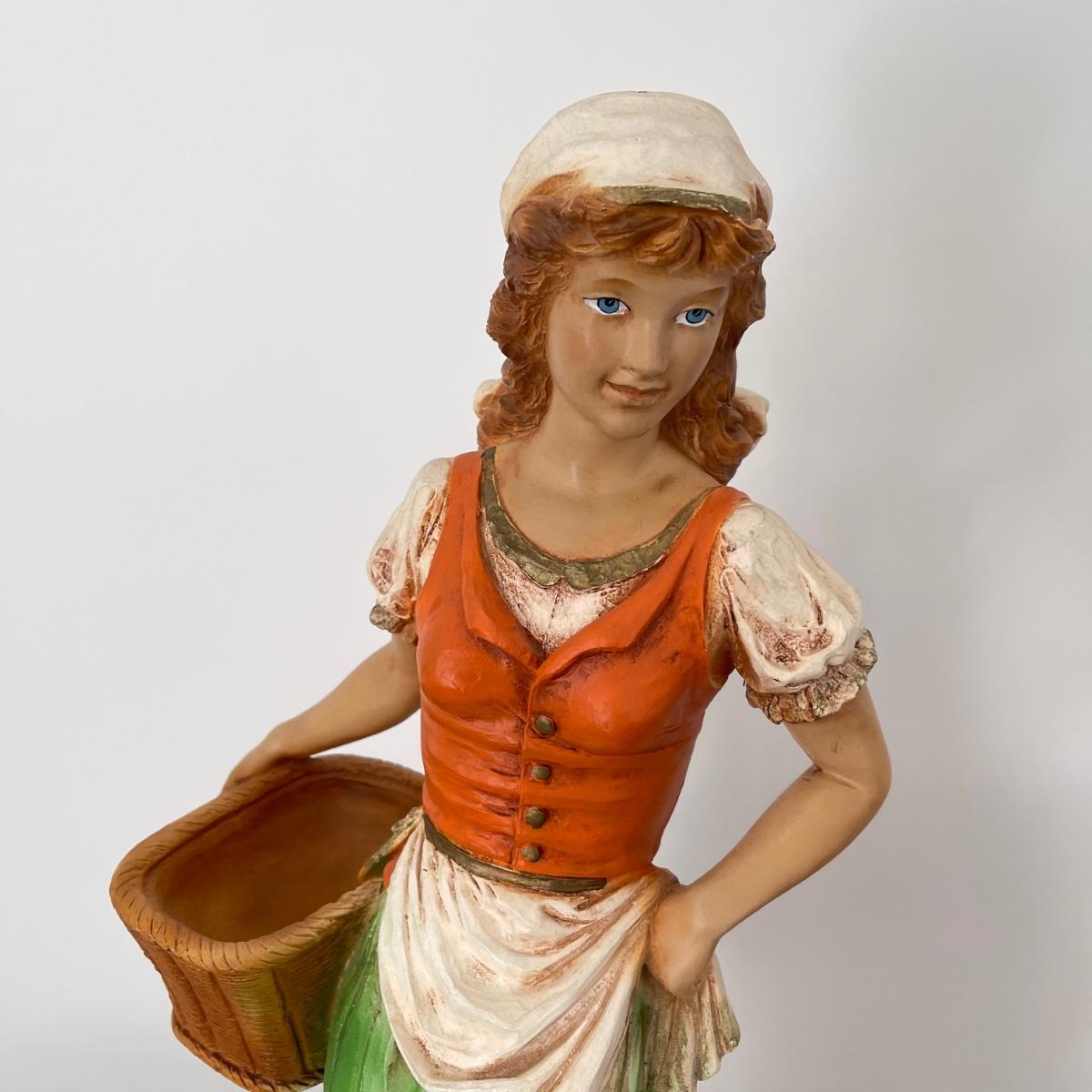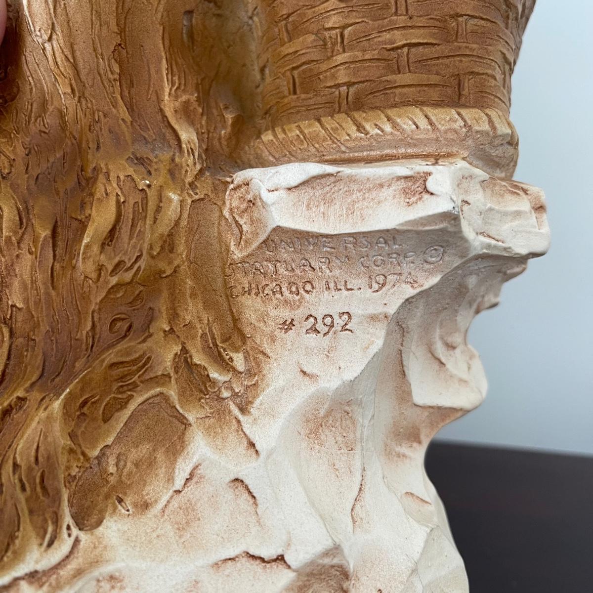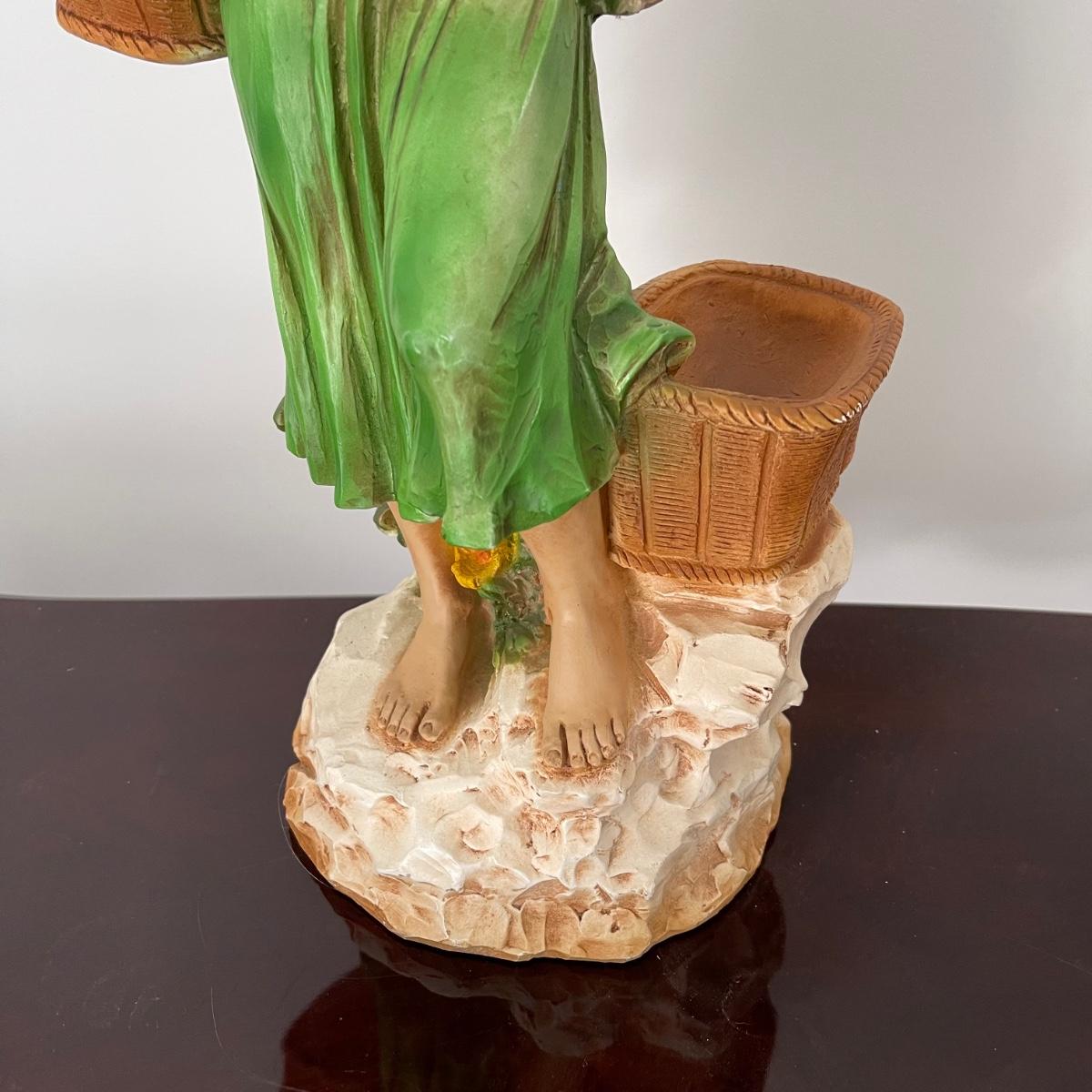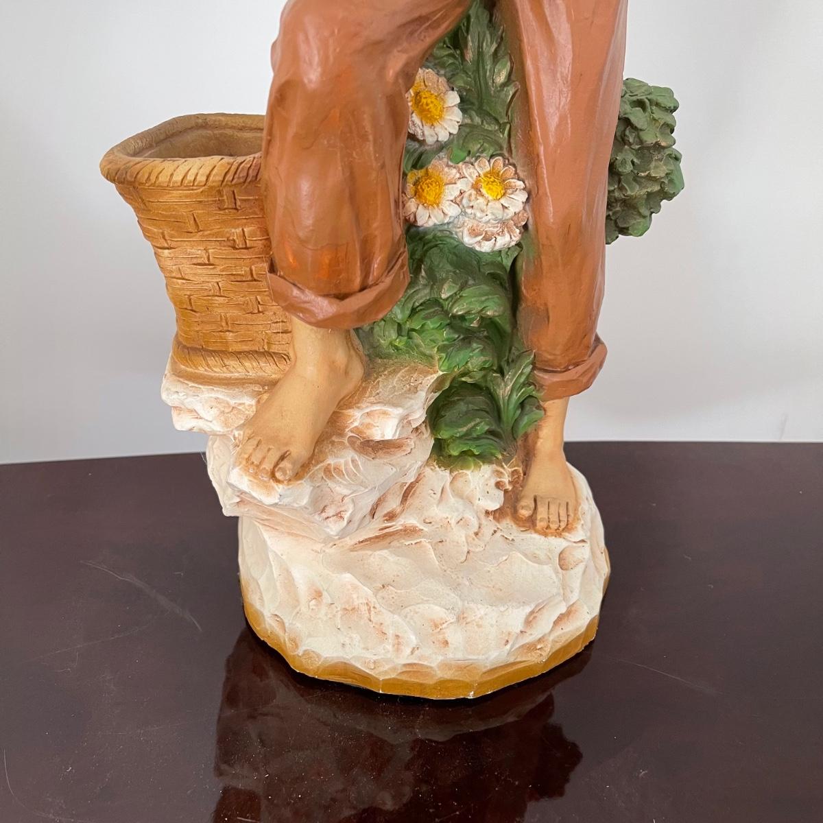 These two Universal Statuary Corp statues stand at about 22 inches tall. The first is a peasant girl with baskets and the inscription identification year and number of 1973 #291 by G. Boni. The second is a peasant boy with baskets and the inscription of 1974 #292, no signature. Shipping available.