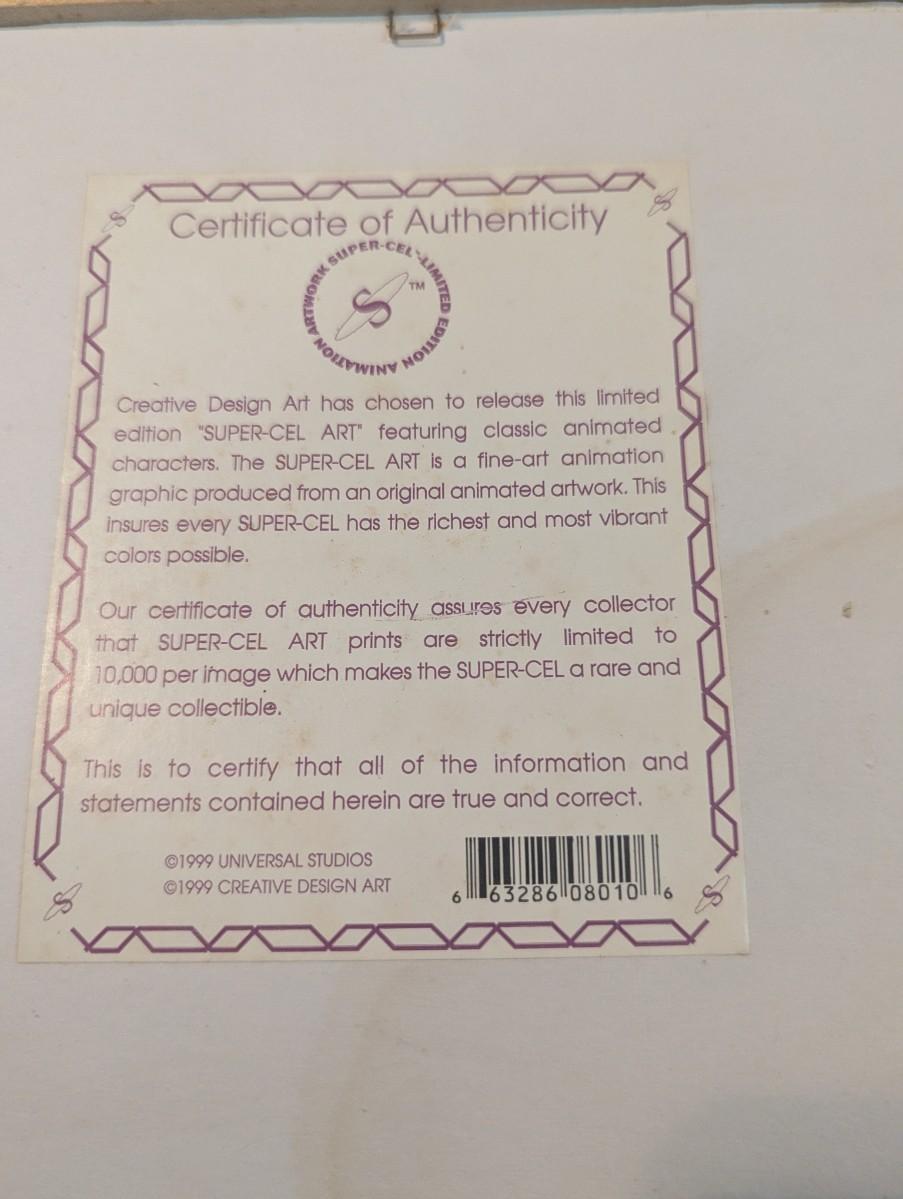 Universal Studios Super-Cel Rocky & Bullwinkle LE w/ COA 11 1/4" x 6"