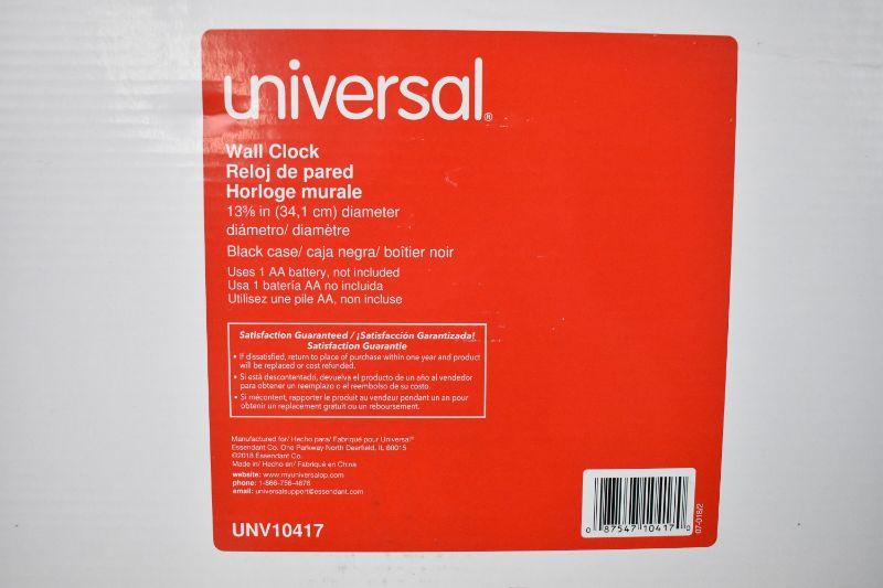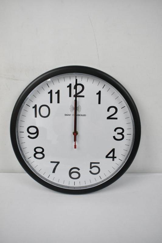 Universal Wall Clock, White & Black, 13" Wide, Radio Controlled - New