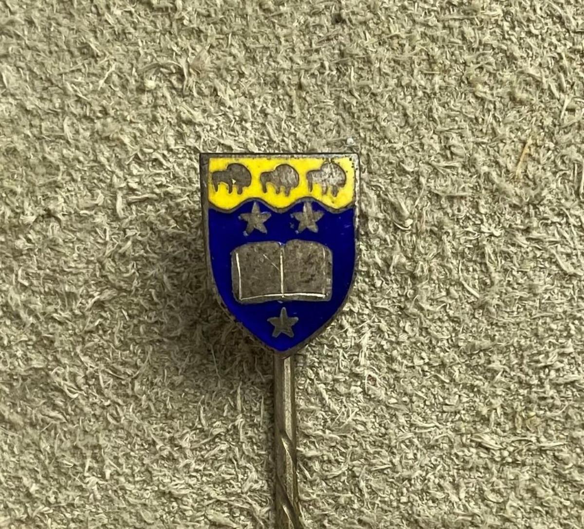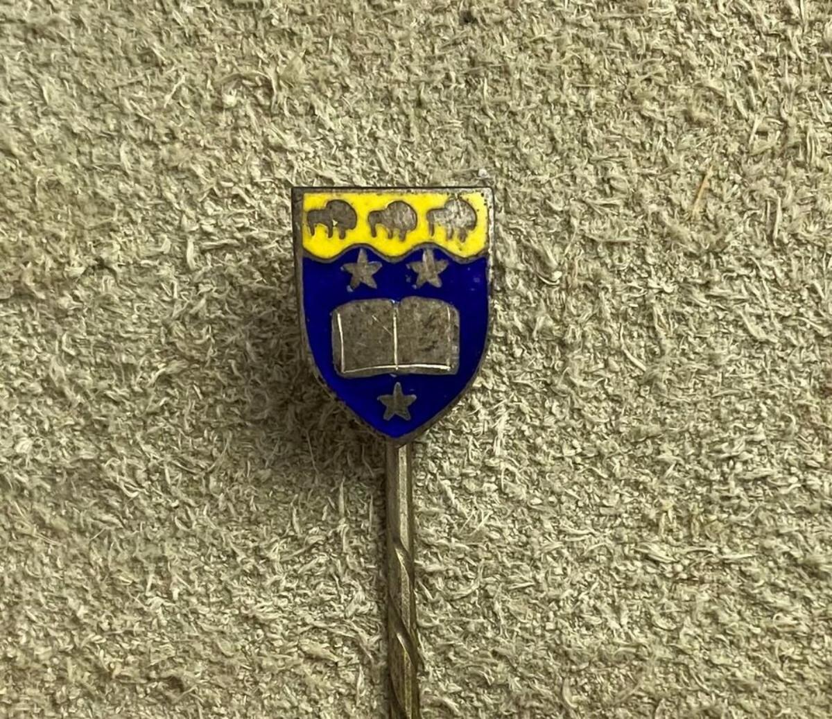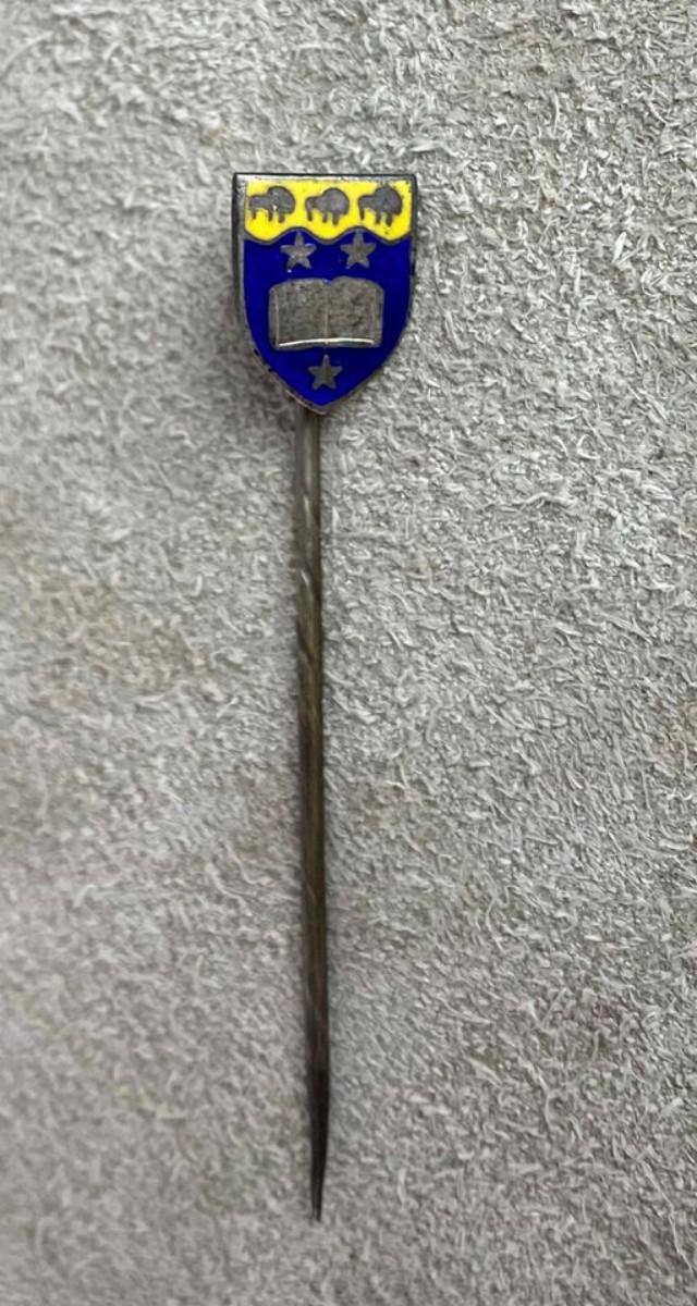 vintage enameled silver stickpin from the University of Auckland in New Zealand circa 1959...This lapel stickpin measures 2 3/8"/60mm...As shown.