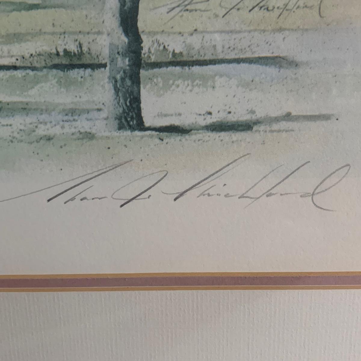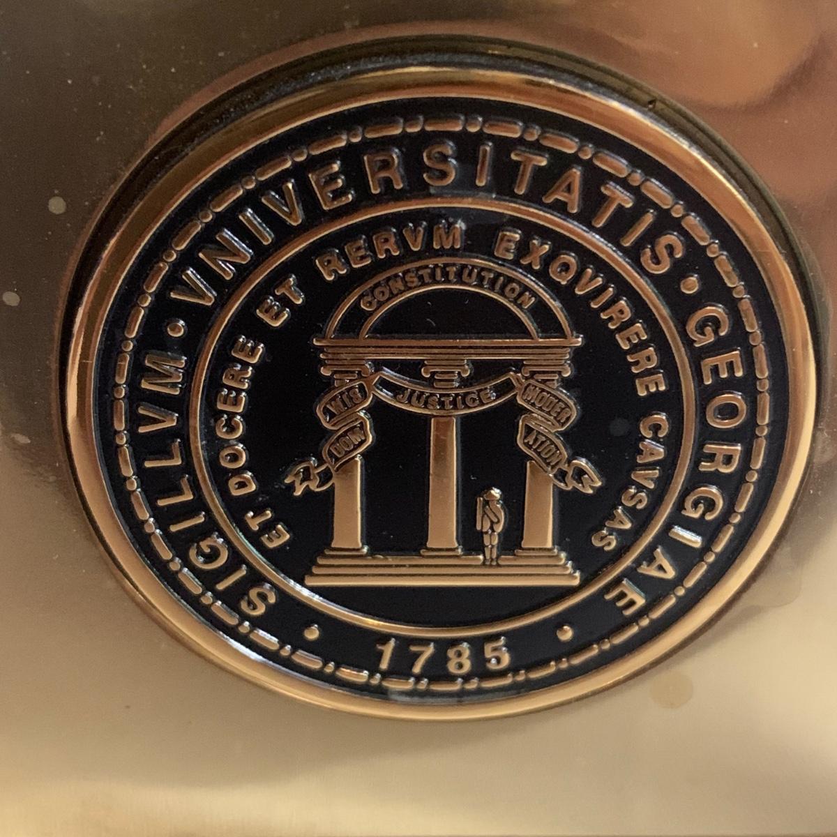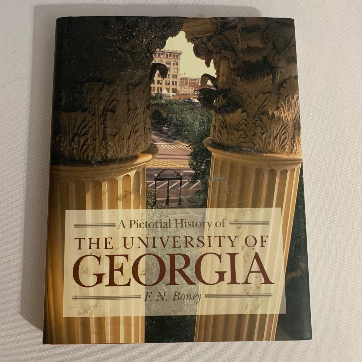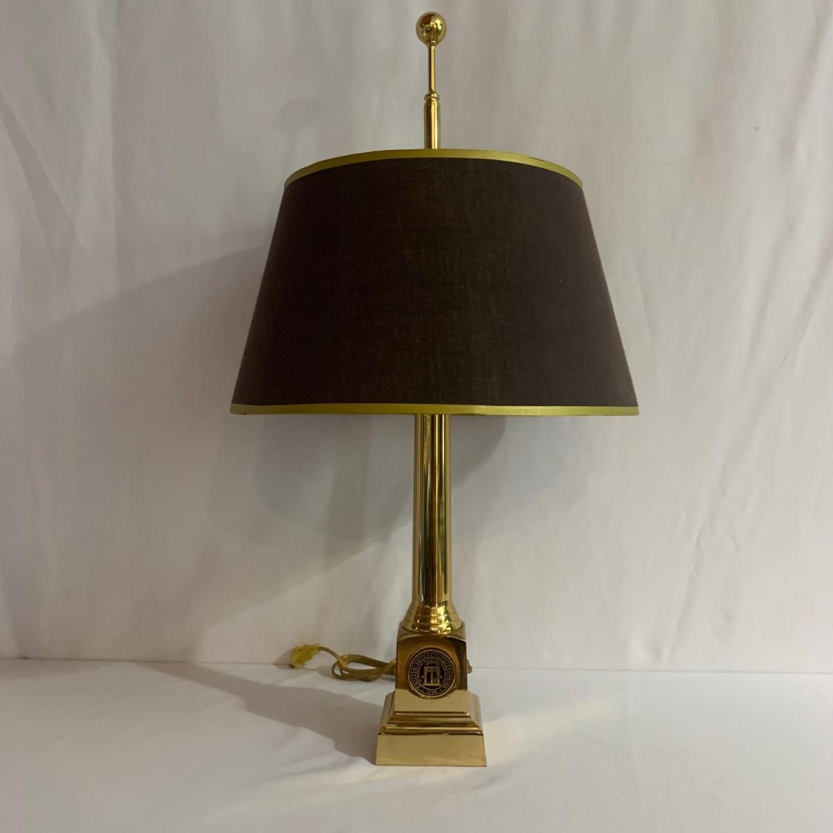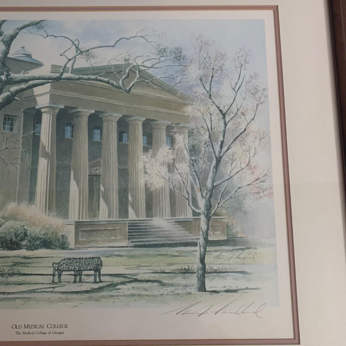 University of Georgia lot includes brass-like lamp with shade that powered on whenplugged in, Pictorial History of The University of Georgia, and framed art. Art is a print of the old Medical College of Georgia. Print is in a wood frame with ivory mat, behind glass. Art is signed and numbered “274/955” in pencil. Frame measures 32” x 25. Please see photos for more details.