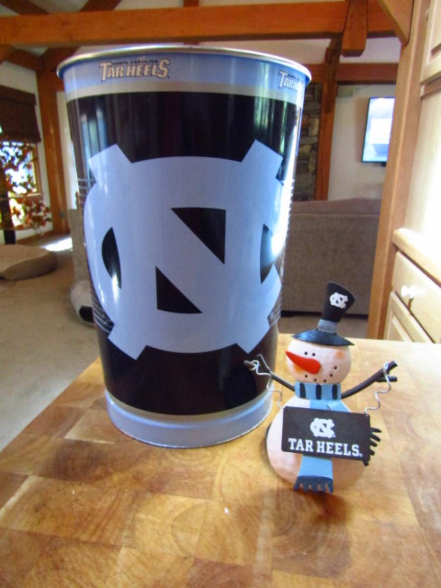 University of NC Metal Wastebasket and Snowman Candle Holder