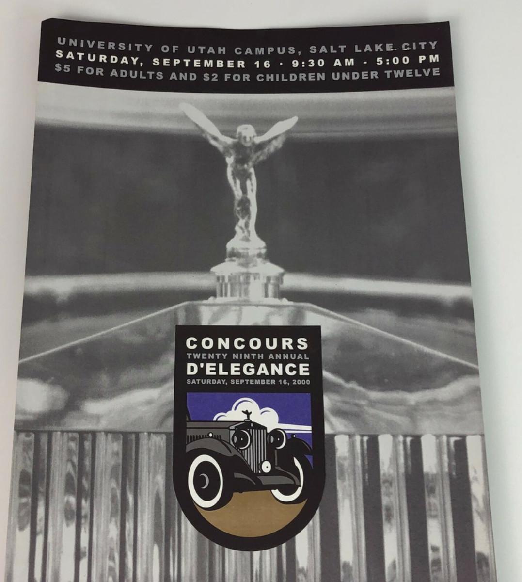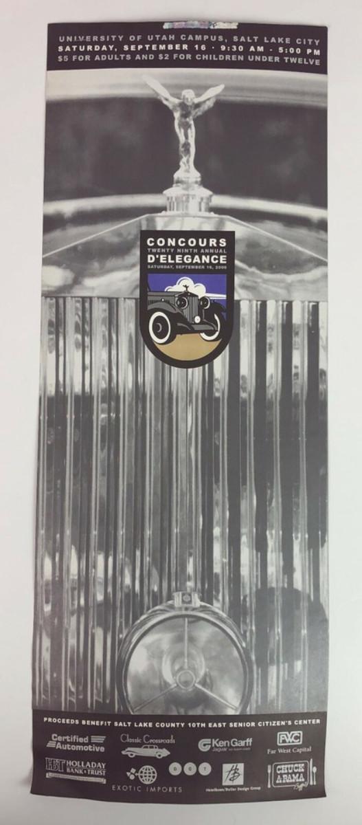 advertising poster for the Utah Concours d'Elegance charity car show when it was still held at the University of Utah...Some edge wear...From Sept 16, 2000...Measures 25" x 9.5"...As shown.