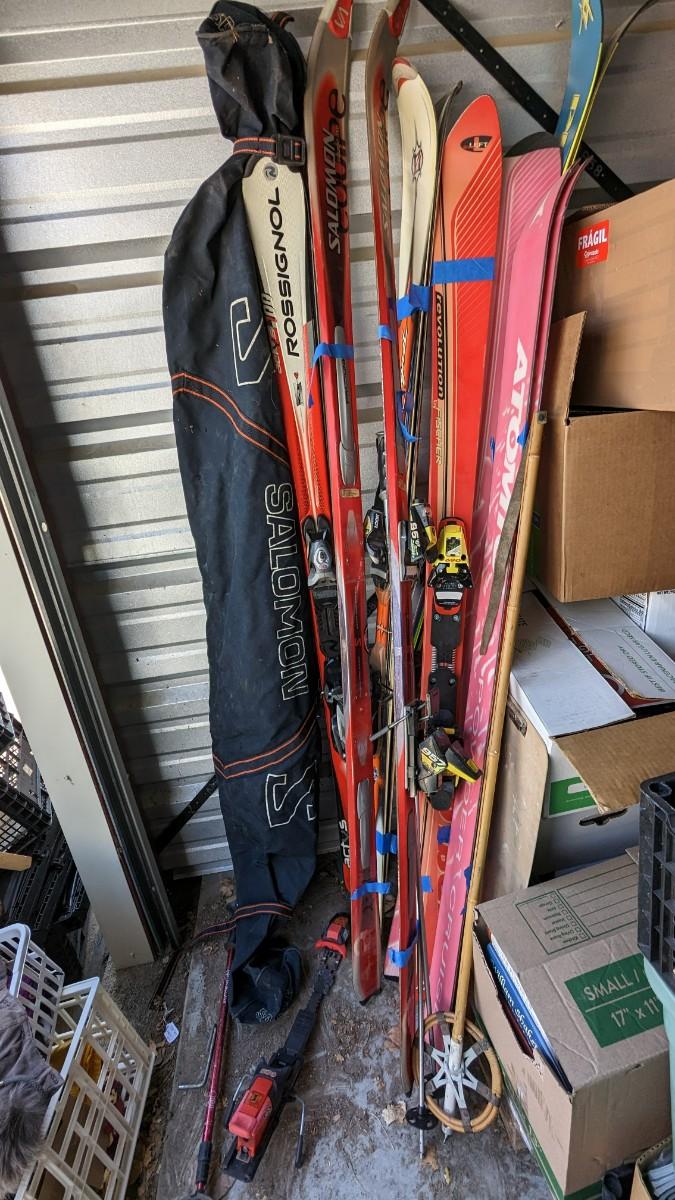 a fantastic assortment of skis and 1 pair of ski poles. Almost all with bindings and hardware intact, see photos for ski sizes and conditions. no shipping. 2616