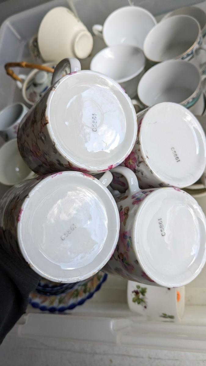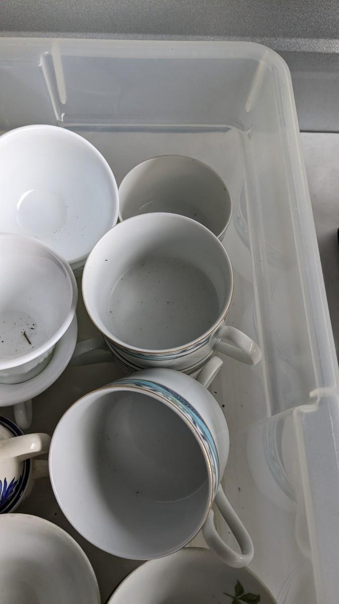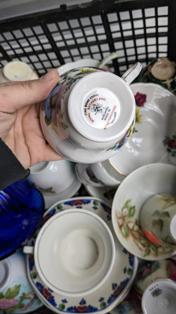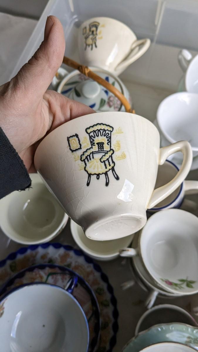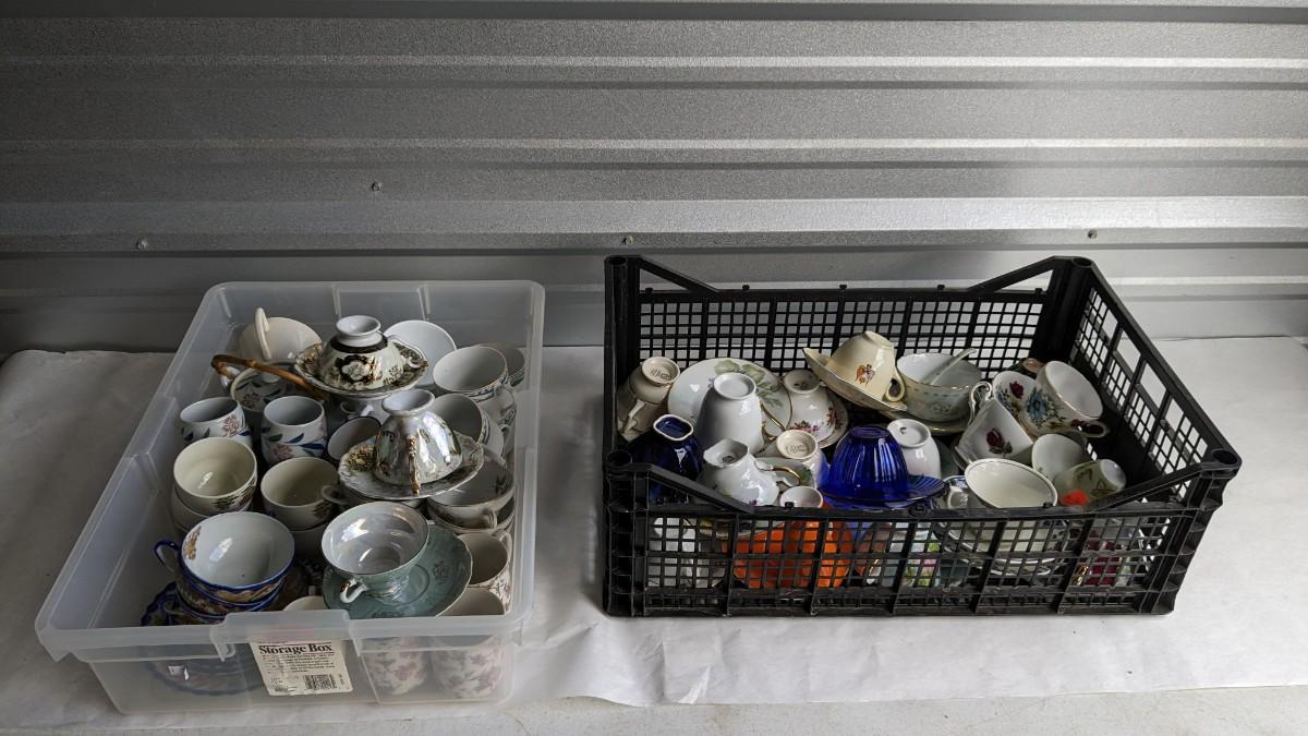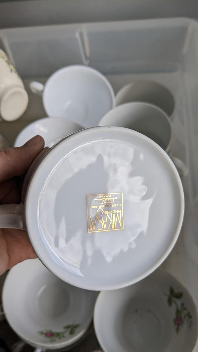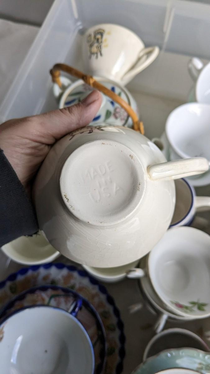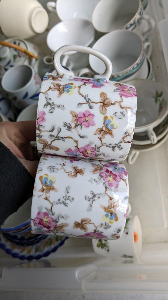 a great assortment of mated tea cups and saucers. includes beautiful asian tea set. No shipping. 2604
