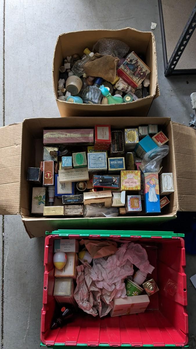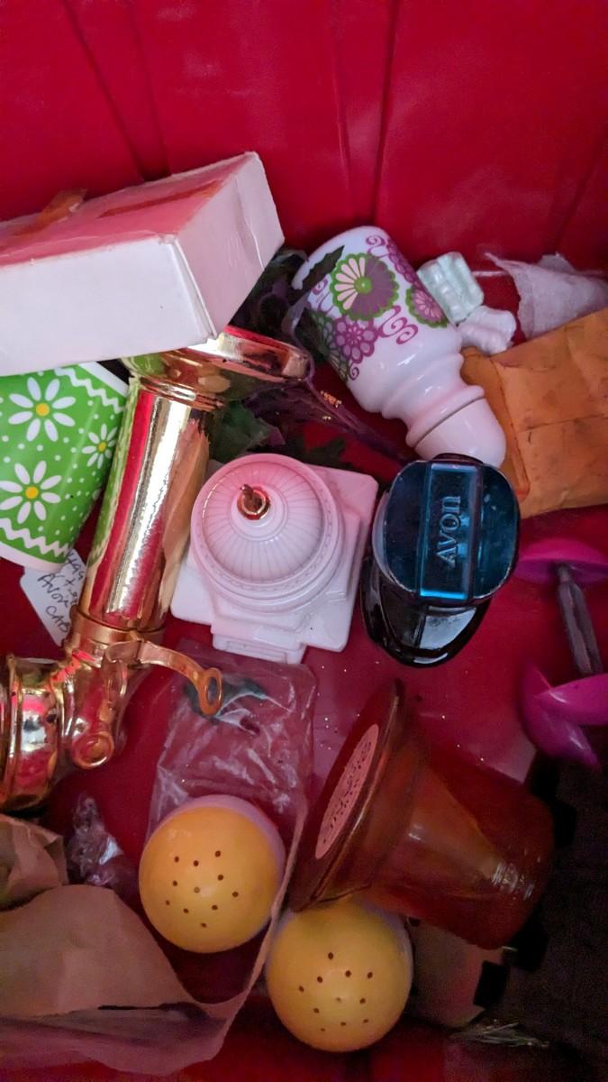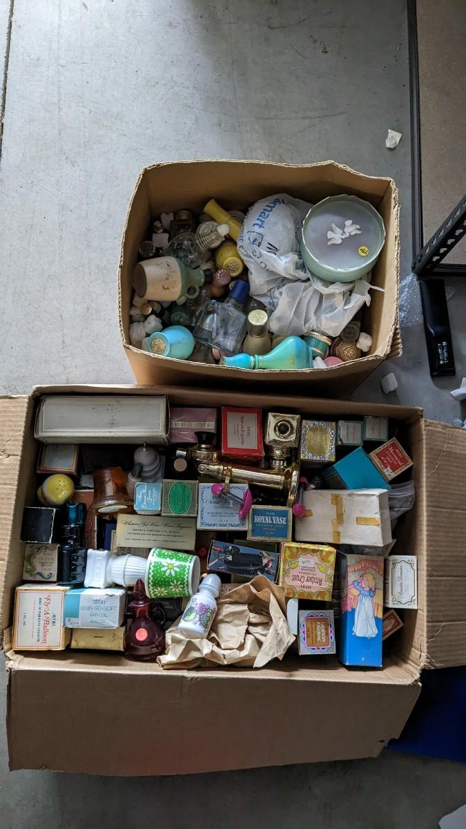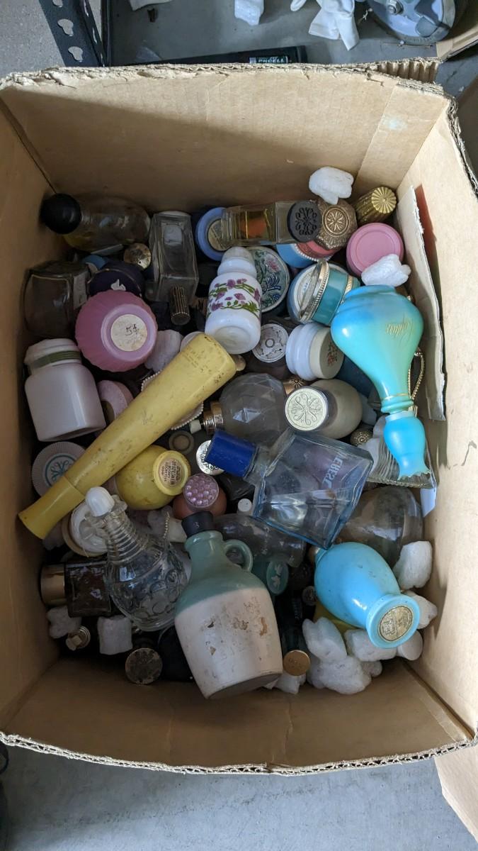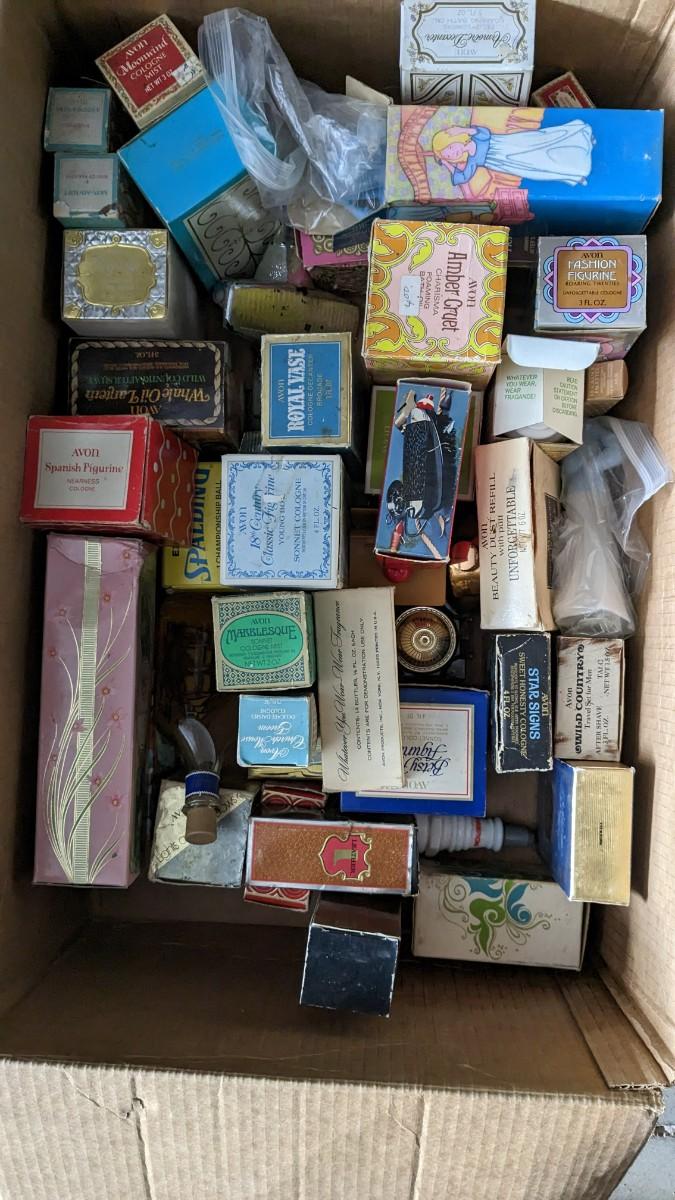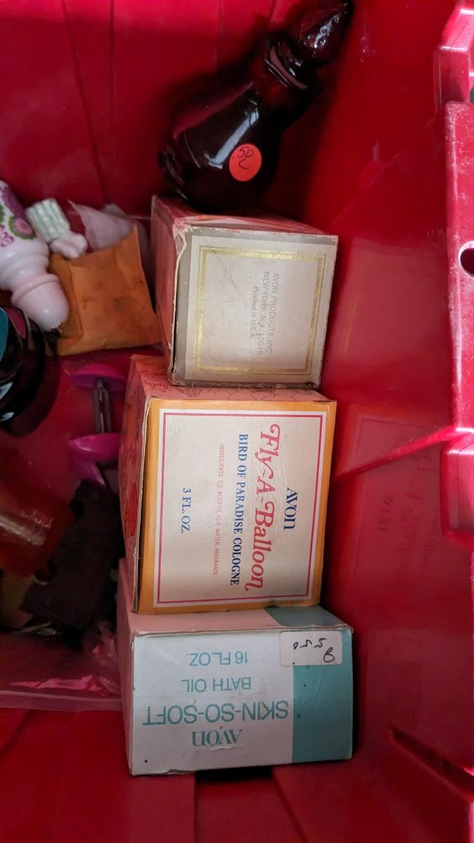 a nice selection of mainly full/partially used vintage Avon. Some empty collectibles also included as well as vintage perfume bottles. No shipping. 2604