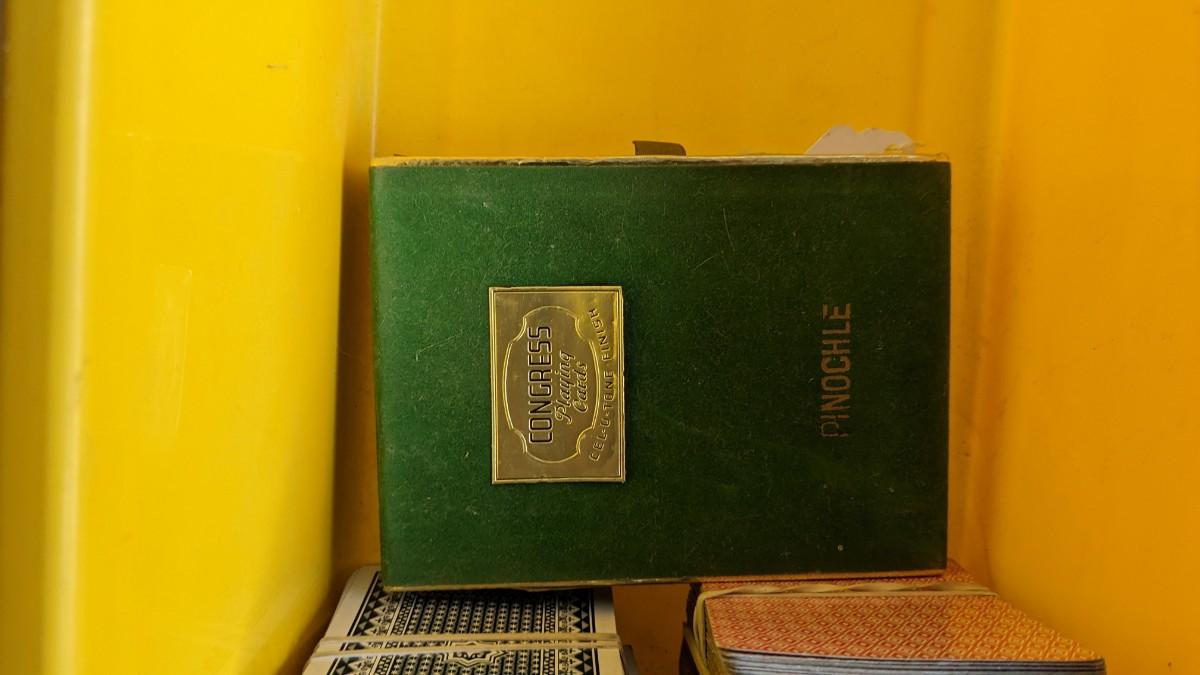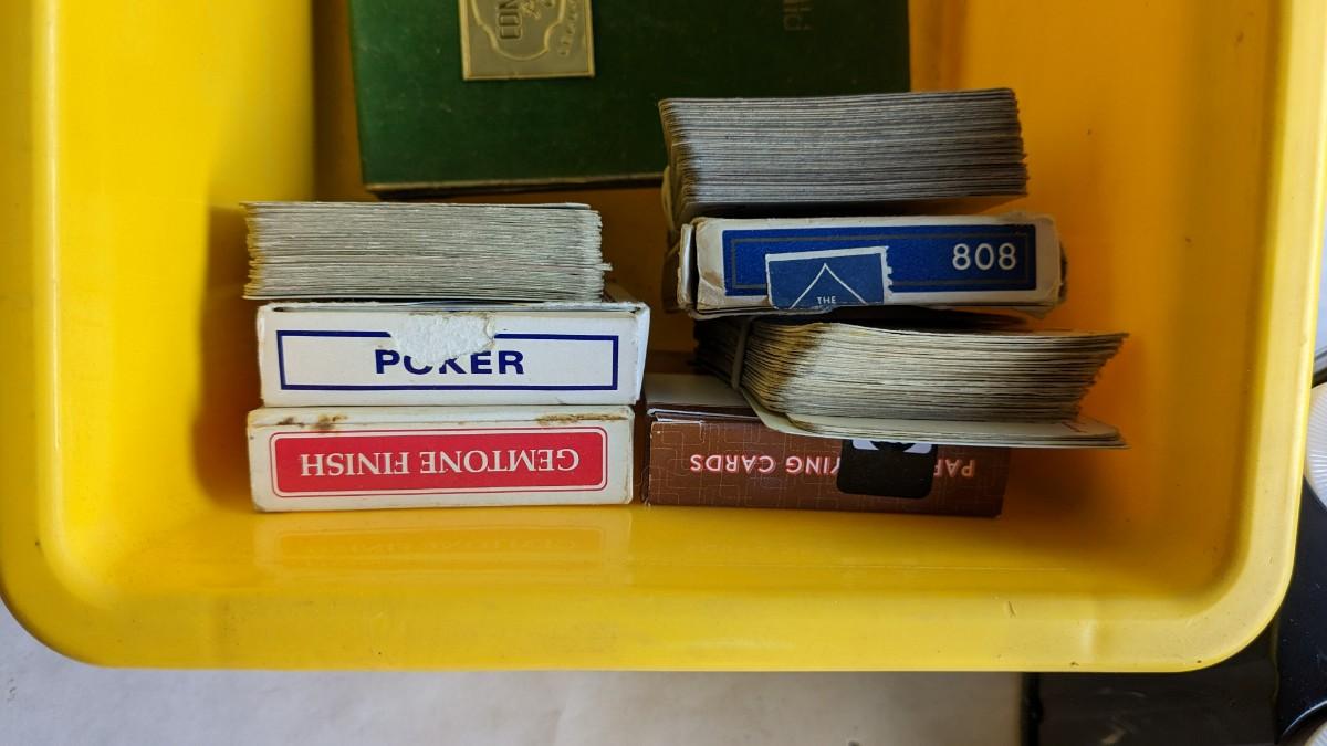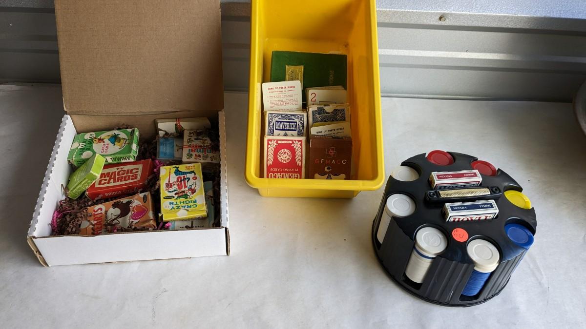 a lovely assortment of vintage playing cards, old Hoyle poker spinner, and various decks of cards. 2604